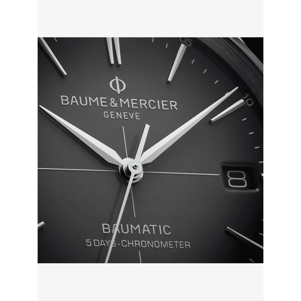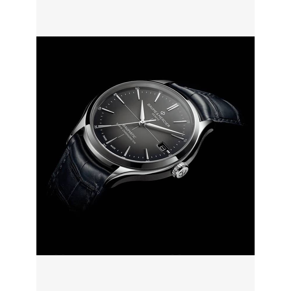 https://www.thbaker.co.uk/baume-mercier-mens-clifton-watch-10550103988Baume & Mercier Mens Clifton Watch 10550https://www.thbaker.co.uk/media/catalog/product/2/4/24-10-020_grey.jpg23923200GBPOutOfStockCLIFTON SS DRK BLU SW GRY The Baume & Mercier 10550 Clifton watch combines a 40mm round shaped stainless steel case and blue leather strap with a triple folding clasp and push button. It has a grey fade effect analogue dial with a date display which is protected beneath scratch resistant sapphire crystal glass. Power is generated by the Swiss made COSC certified Baumatic BM13-1975A automatic movement with 21 rubies and a power reserve of up to 120 hours. This model also has a sapphire crystal case back and a water resistance of up to 50 metres.Baume & Mercierhttps://www.thbaker.co.uk/media/catalog/product/2/4/24-10-020_04_grey.jpghttps://www.thbaker.co.uk/media/catalog/product/2/4/24-10-020_08_grey.jpghttps://www.thbaker.co.uk/media/catalog/product/2/4/24-10-020_03_grey.jpghttps://www.thbaker.co.uk/media/catalog/product/2/4/24-10-020_07_grey.jpghttps://www.thbaker.co.uk/media/catalog/product/2/4/24-10-020_02_grey.jpghttps://www.thbaker.co.uk/media/catalog/product/2/4/24-10-020_06_grey.jpghttps://www.thbaker.co.uk/media/catalog/product/2/4/24-10-020_05_grey.jpghttps://www.thbaker.co.uk/media/catalog/product/b/a/baume-and-mercier-packaging_grey_1.jpg7613375403838add-to-cartcondition:Nodisc_no_stock:Yesex_display:NoNoYesNo2410020Baume & Mercier10550MensOfficial Baume & Mercier Packaging2 Year Baume & Mercier WarrantyLuxuryNoCliftonWatchBlueLeather StrapStainless SteelRound11.0mm40mmAnalogueSapphire Crystal GlassGrey50 metresAutomaticPush Button Deployment ClaspNo StoneNoNoNoNoYesNoNoBaume & Mercier Mens Clifton Watch24-10-0202021-04-21 00:00:00[]2021-04-21
