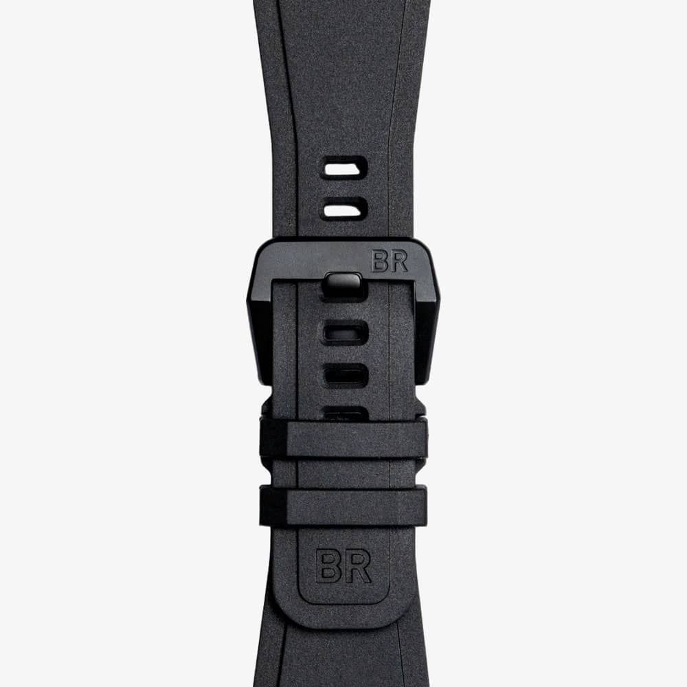 • Presented on a black rubber strap with traditional buckle.