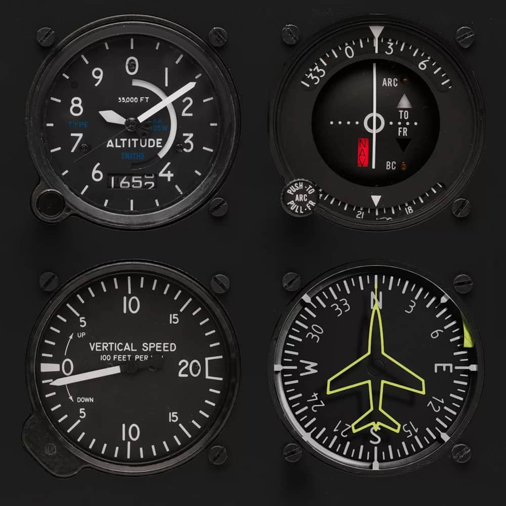 Beyond the power of the display, the watch pays homage to the complex mechanical design of the aeronautical gyrocompass. For pilots, it’s crucial to know their precise position. As such, engineers developed this visually simple yet technically complex system, with a mechanism that transfers the position of a plane in flight into a vertical graphic representation on the dial.