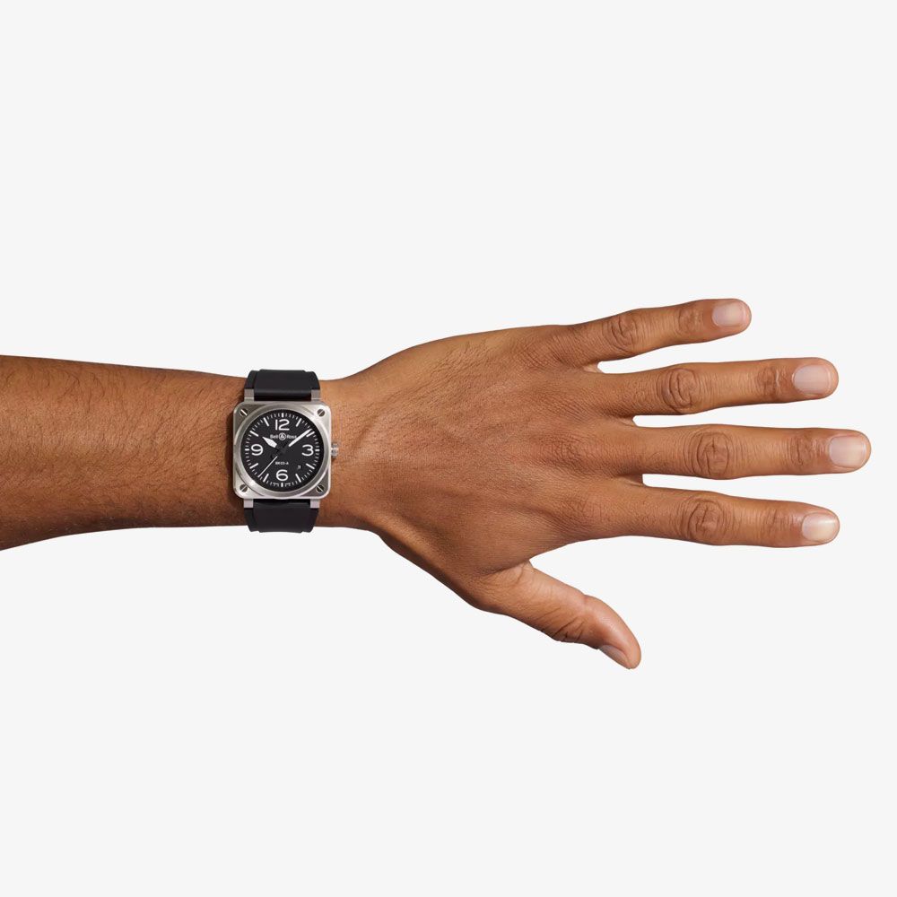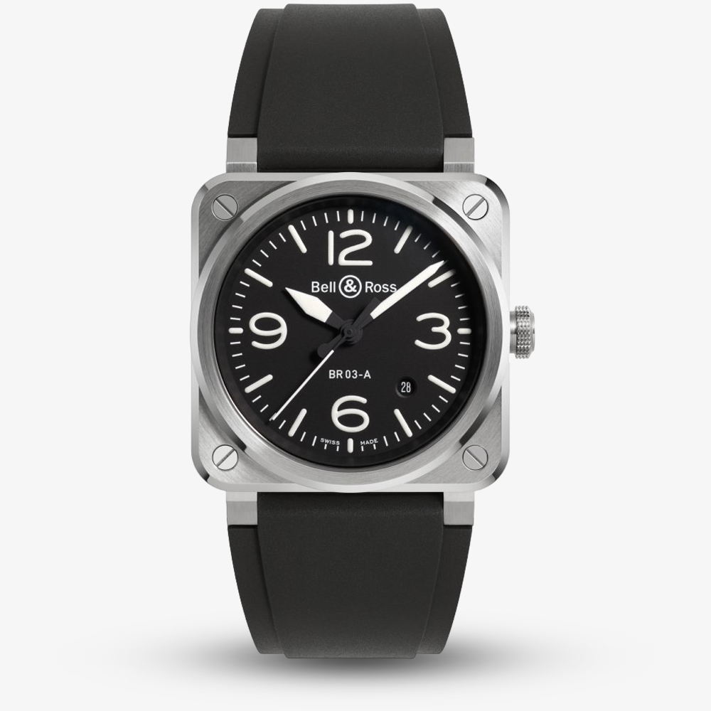 The BR 03 collection encapsulates the essence of the brand, representing its distinctive style with the iconic "circle within a square, secured by four screws" motif. Remaining true to its core principles, the updated BR 03 now boasts a slightly more compact design and incorporates the advanced BR CAL.302 Caliber, satin polished stainless-steel case, and sapphire glass with anti-reflective coating, it's a timepiece of sophistication and endurance.