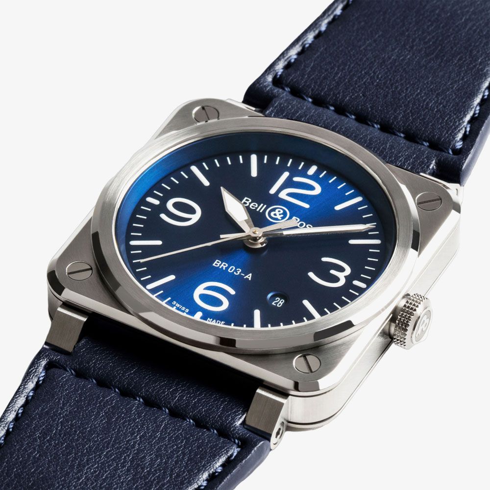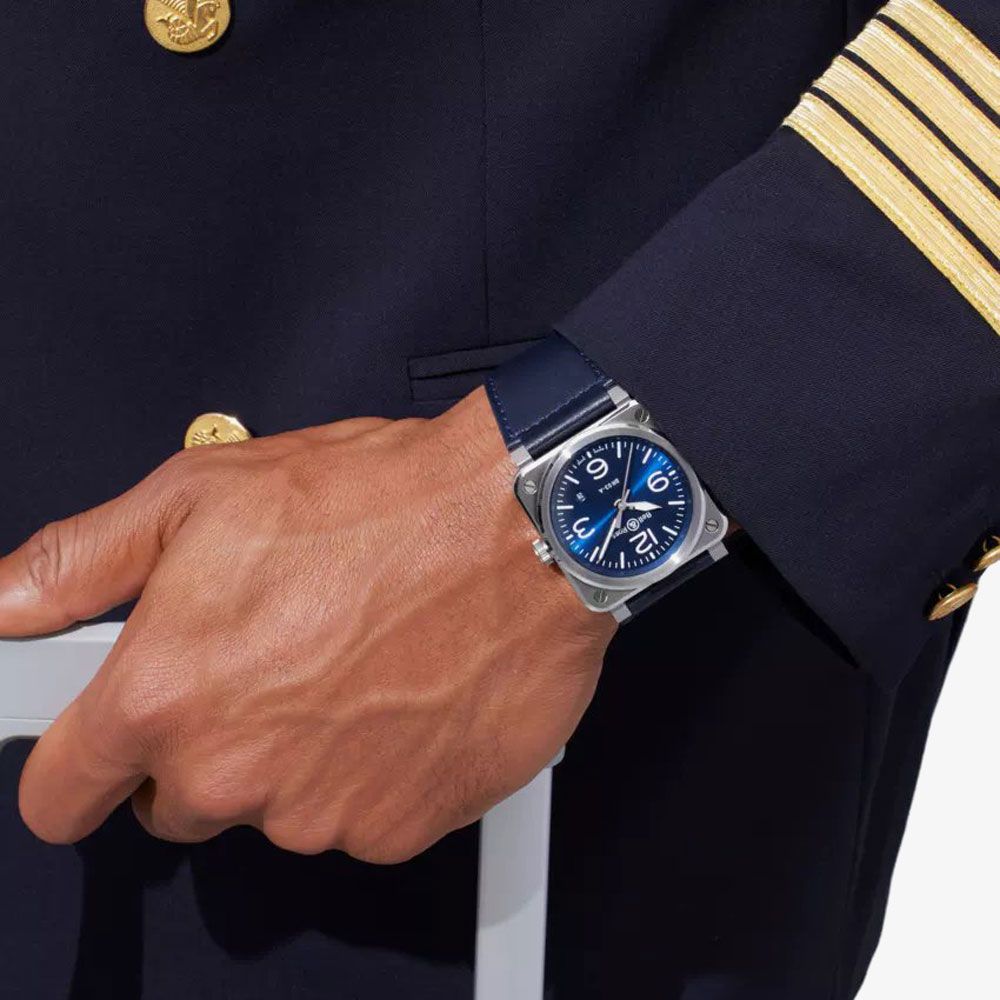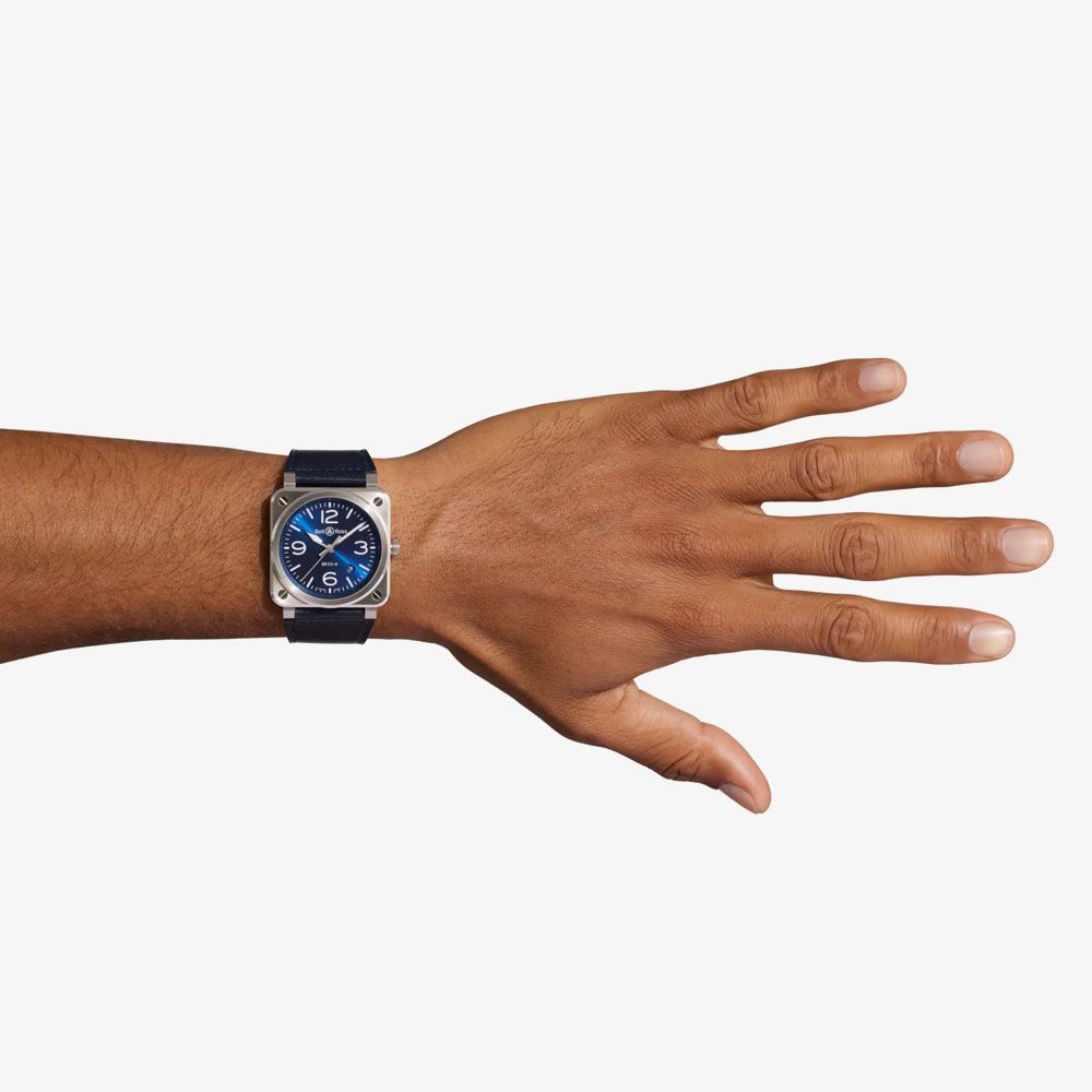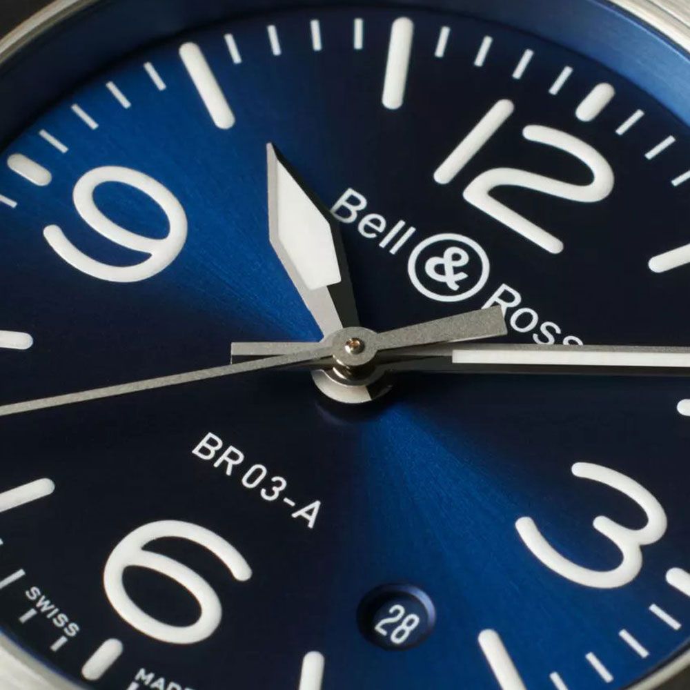 The BR 03 collection encapsulates the essence of the brand, representing its distinctive style with the iconic "circle within a square, secured by four screws" motif. Remaining true to its core principles, the updated BR 03 now boasts a slightly more compact design and incorporates the advanced BR CAL.302 Caliber, satin polished stainless-steel case, sapphire glass with anti-reflective coating, and a comfortable blue calfskin, it's a timepiece of sophistication and endurance.