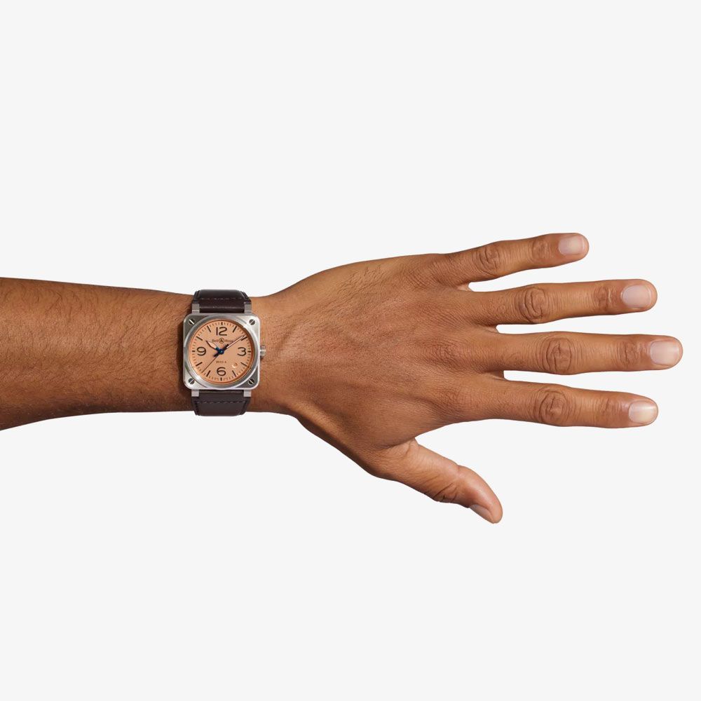 The BR 03 collection encapsulates the essence of the brand, representing its distinctive style with the iconic "circle within a square, secured by four screws" motif. Remaining true to its core principles, the updated BR 03 now boasts a slightly more compact design and incorporates the advanced BR CAL.302 Caliber, satin polished stainless-steel case, sapphire glass with anti-reflective coating, and a comfortable brown calfskin, it's a timepiece of sophistication and endurance.