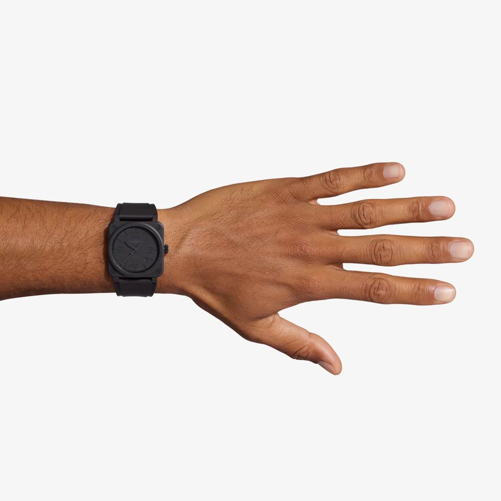 The BR 03 collection encapsulates the essence of the brand, representing its distinctive style with the iconic "circle within a square, secured by four screws" motif. Remaining true to its core principles, the updated BR 03 now boasts a slightly more compact design and incorporates the advanced BR CAL.302 Caliber, micro-blasted black ceramic case, sapphire glass with anti-reflective coating, it's a timepiece of sophistication and endurance.