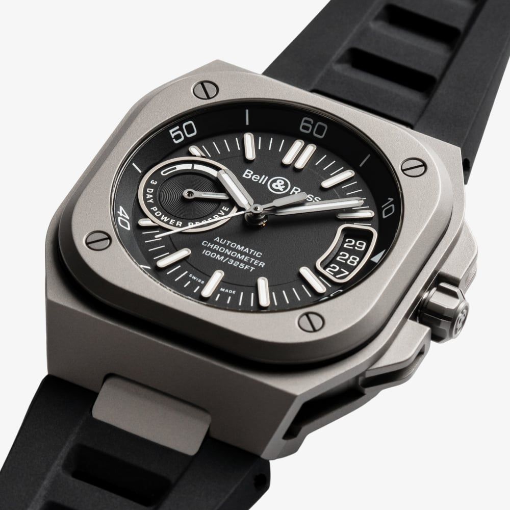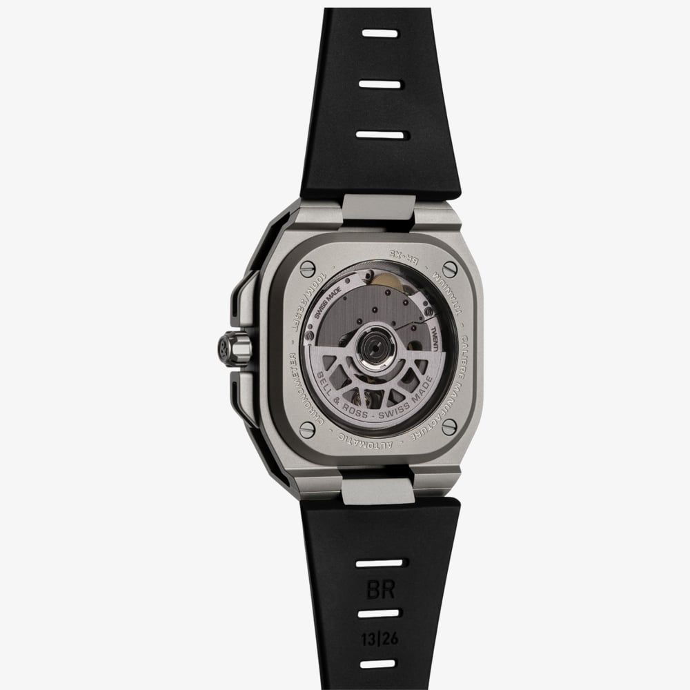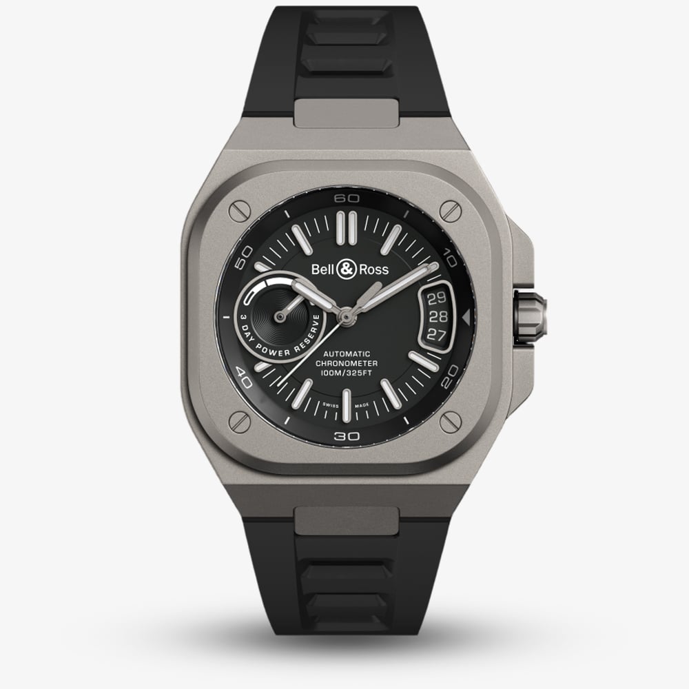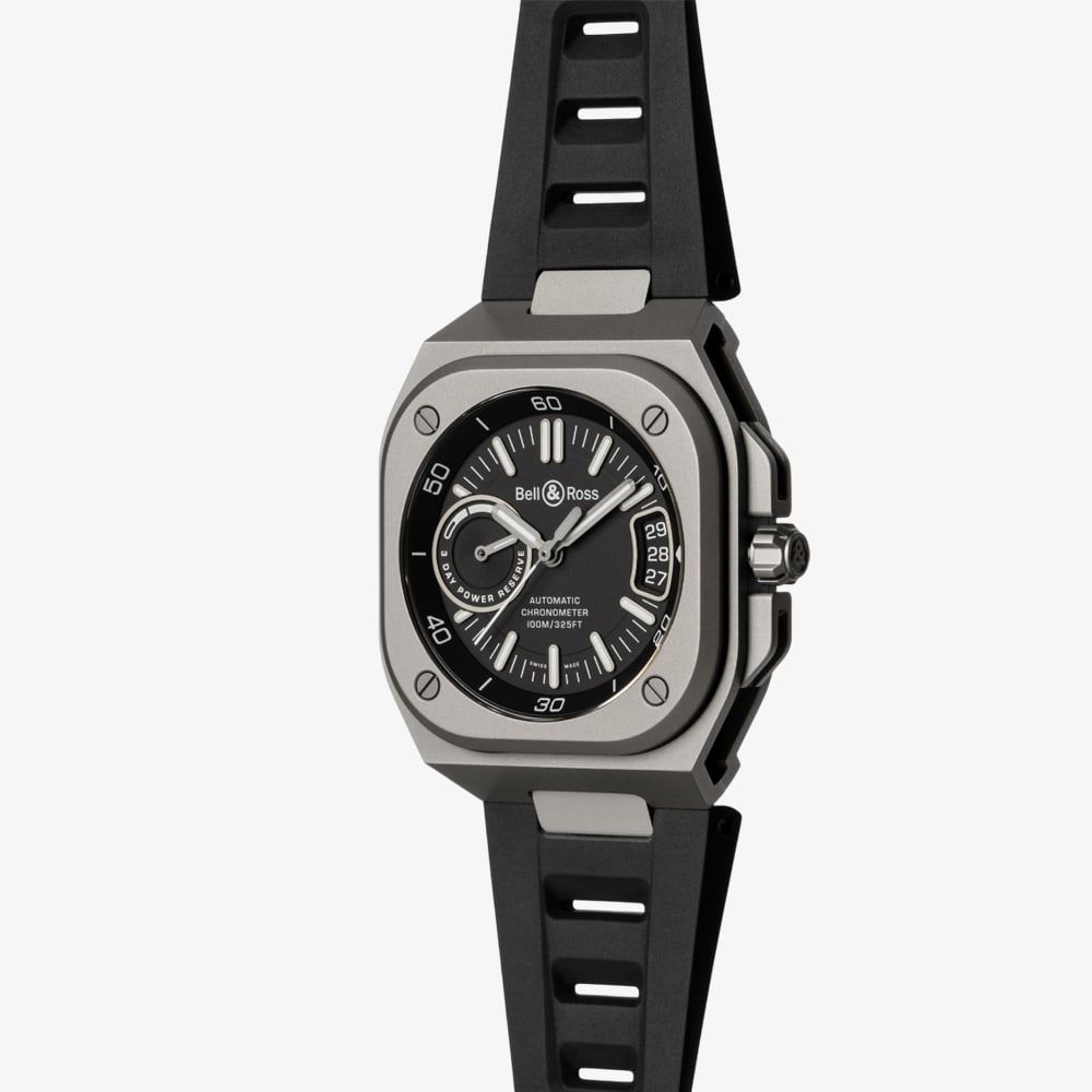 • 100 metre water resistance.Bell & Rosshttps://www.thbaker.co.uk/media/catalog/product/b/r/br-x5-black-titanium-rubber-soldat_02.jpghttps://www.thbaker.co.uk/media/catalog/product/b/r/br-x5-black-titanium-rubber-soldat_03.jpghttps://www.thbaker.co.uk/media/catalog/product/b/r/br-x5-black-titanium-rubber-soldat_04.jpgadd-to-cartcondition:Nodisc_no_stock:Noex_display:Nosearch_keywords:waterproof,luxuryNoNoNowaterproof,luxuryBell & RossBRX5R-BL-TI/SRBMensOfficial Bell & Ross Packaging2 Year Bell & Ross WarrantyClassicNoWatchBlackRubber StrapTitaniumRound41.0mmAnalogueSapphire Crystal GlassBlackBlack100 metresAutomaticPin BuckleNo StoneNo StoneNoNoNoNoYesYesNo{"name":"v12_finance","text":"Or from \u00a3145 per month","imageUrl":"https:\/\/www.thbaker.co.uk\/media\/nosto\/v12-finance.png"}2499BRX5RBLTISRBBell & Ross Mens BR-X5 Black Titanium Rubber Strap Watch24-99-BRX5R-BL-TI/SRB2025-05-28 00:00:000[{"path":"\/Watches","url":"\/watches\/"},{"path":"\/Watches\/Mens Watches","url":"\/mens-watches\/"},{"path":"\/Watches\/Automatic Watches","url":"\/automatic-watches\/"},{"path":"\/Watches\/Classic Watches","url":"\/classic-watches\/"},{"path":"\/Watches\/Swiss Watches","url":"\/swiss-watches\/"},{"path":"\/Brands A-Z\/Bell & Ross Watches","url":"\/bell-and-ross-watches\/"},{"path":"\/Watches\/Luxury Watches","url":"\/luxury-watches\/"},{"path":"\/Brands A-Z\/Bell & Ross Watches\/Bell & Ross Mens","url":"\/bell-ross-mens\/"},{"path":"\/Free Gift Card - When you spend \u00a3500+","url":"\/free-gift-card\/"},{"path":"\/Watches\/Luxury Watches\/Mens Luxury Watches","url":"\/mens-luxury-watches\/"},{"path":"\/\u00a3500 Gold Gift Card (\u00a35001+)","url":"\/500-gold-gift-card\/"},{"path":"\/Free Gift With Purchase Products","url":"\/free-gift-with-purchase-products\/"},{"path":"\/Watches\/Waterproof Watches","url":"\/waterproof-watches\/"},{"path":"\/Brands A-Z\/Bell & Ross Watches\/Bell & Ross Automatic","url":"\/bell-and-ross-automatic-watches\/"},{"path":"\/Brands A-Z\/Bell & Ross Watches\/Bell & Ross Strap","url":"\/bell-and-ross-strap-watches\/"}]2025-05-28