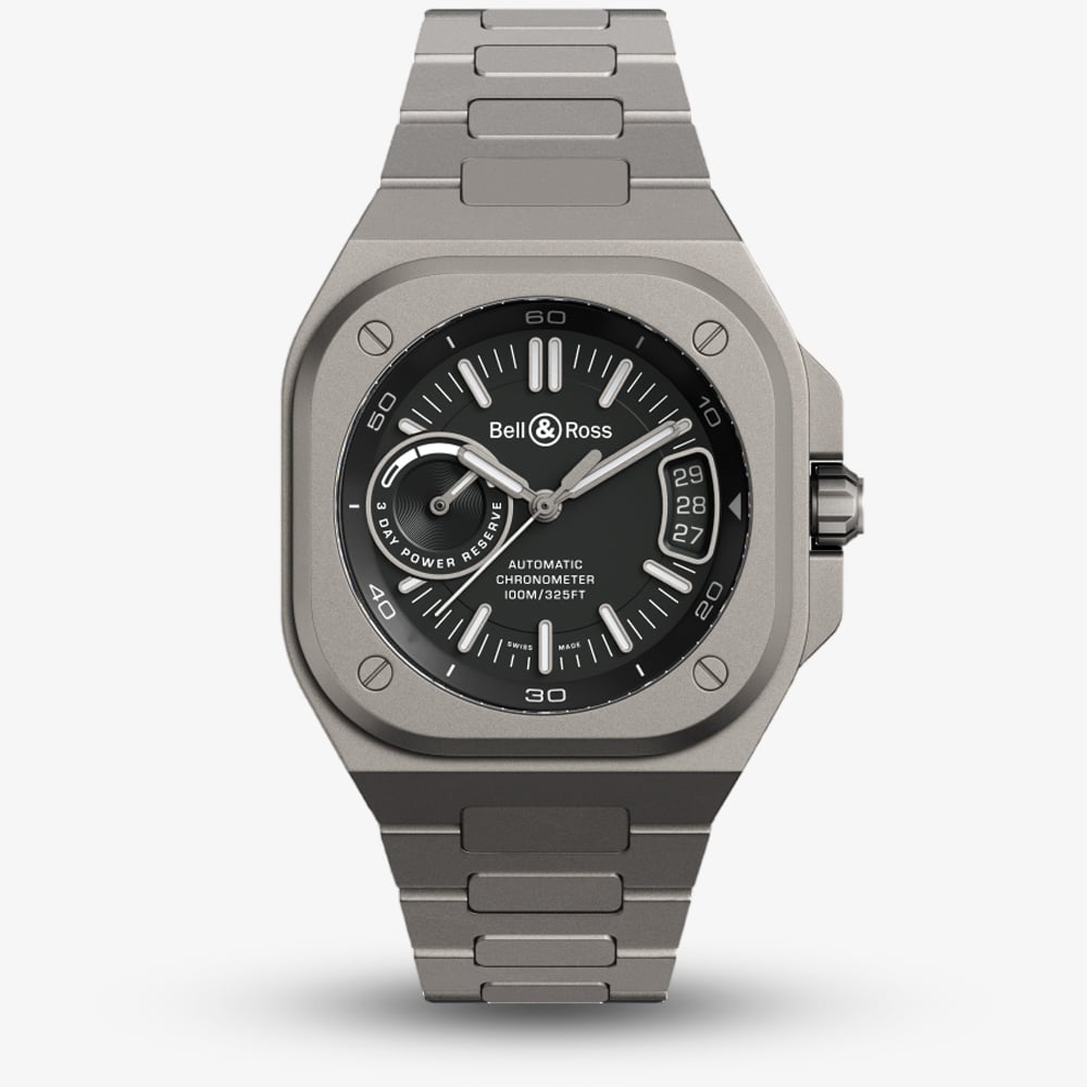 • 100 metre water resistance.Bell & Rosshttps://www.thbaker.co.uk/media/catalog/product/b/r/br-x5-black-titanium-soldat_02.jpghttps://www.thbaker.co.uk/media/catalog/product/b/r/br-x5-black-titanium-soldat_03.jpghttps://www.thbaker.co.uk/media/catalog/product/b/r/br-x5-black-titanium-soldat_04.jpgcondition:Nodisc_no_stock:Noex_display:Nosearch_keywords:waterproof,luxuryNoNoNowaterproof,luxuryBell & RossBRX5R-BL-TI/STIMensOfficial Bell & Ross Packaging2 Year Bell & Ross WarrantyClassicNoWatchGreyTitanium BraceletTitaniumRound41.0mmAnalogueSapphire Crystal GlassBlackBlack100 metresAutomaticFold Over ClaspNo StoneNo StoneNoNoNoNoYesYesNo{"name":"v12_finance","text":"Or from \u00a3162 per month","imageUrl":"https:\/\/www.thbaker.co.uk\/media\/nosto\/v12-finance.png"}2499BRX5RBLTISTIBell & Ross Mens BR-X5 Black Titanium Watch24-99-BRX5R-BL-TI/STI2025-05-28 00:00:0002025-05-28