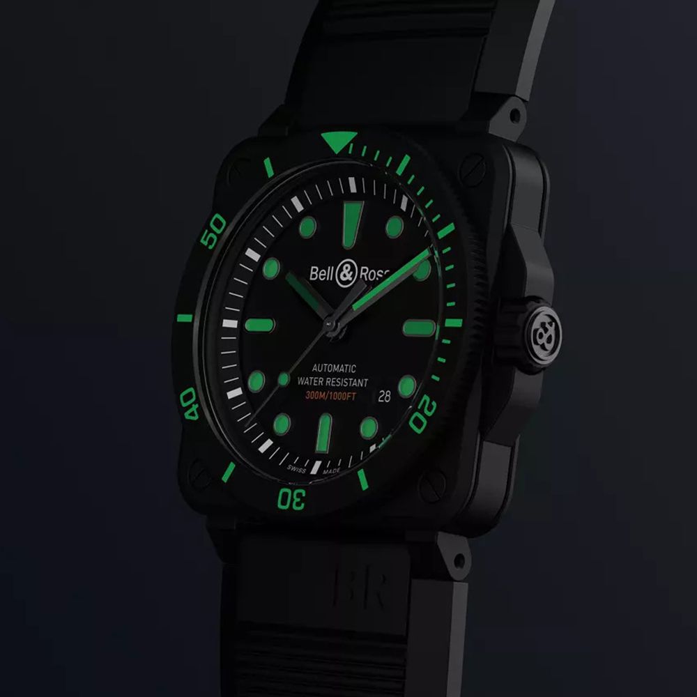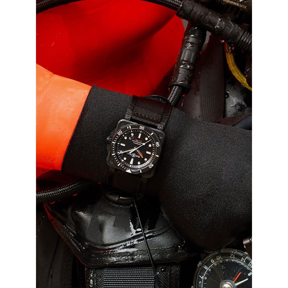 • Dressed in ceramic, this striking Bell and Ross diving watch meets the ISO 6425 standards