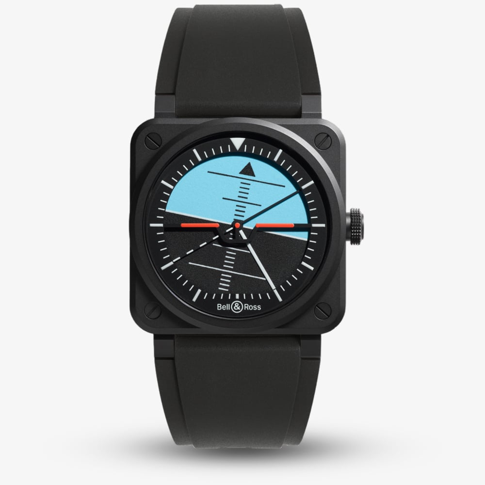 Inspired by the essential flight instruments found in aircraft cockpits, this exclusive timepiece is a bold and distinctive accessory that pays tribute to aviation's most vital navigational tool: the artificial horizon. With its striking design, professional-grade materials, and limited availability, this watch is a must-have for aviation enthusiasts.