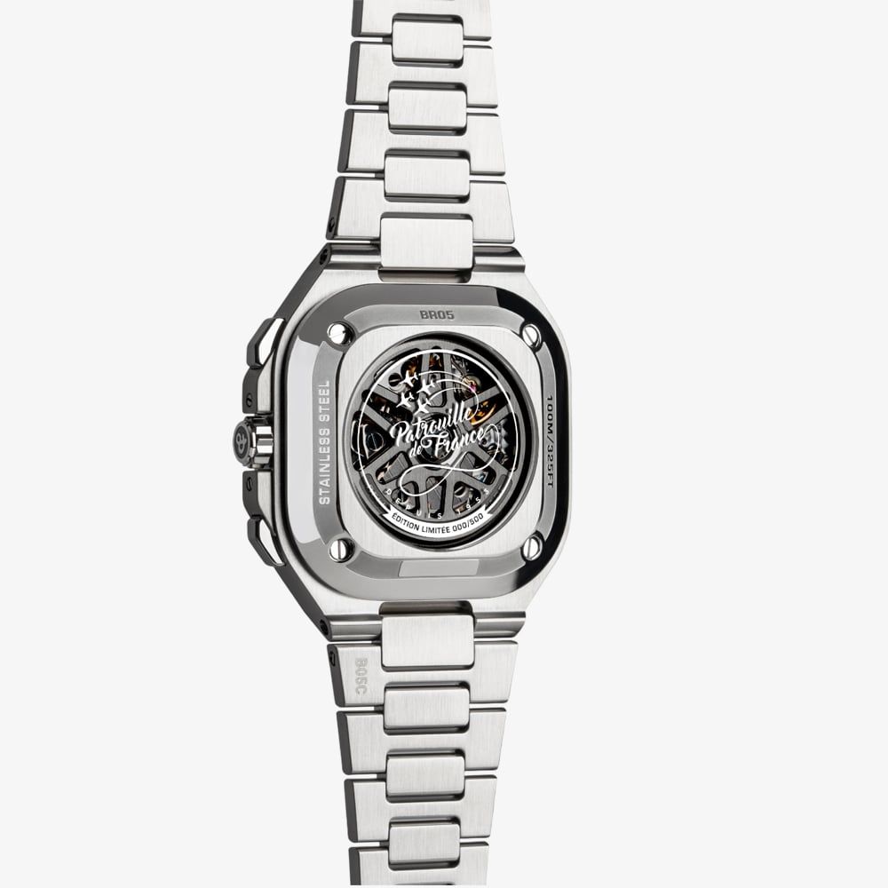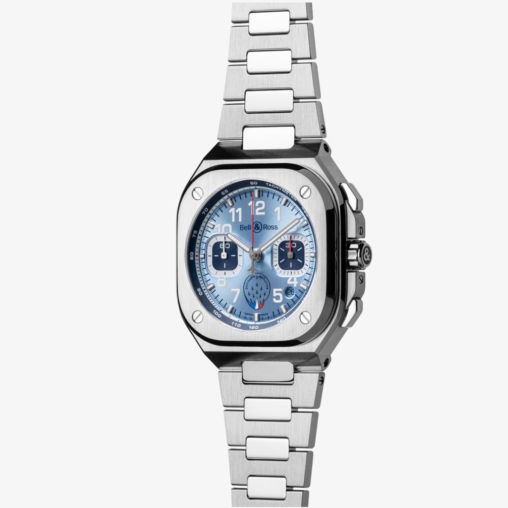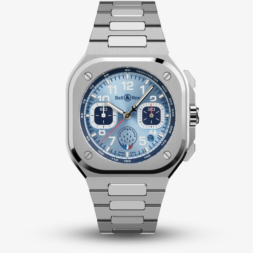 This exclusive timepiece seamlessly fuses military heritage with urban sophistication, making it a bold statement for collectors and aviation enthusiasts. Housed in a sleek 42mm stainless steel case, the BR 05 Chrono Patrouille de France boasts an integrated bracelet design and a bold, aviation-inspired look. The vivid blue sunray dial mirrors the official colours of the Patrouille de France, while the squadron’s emblem sits proudly at 6 o’clock — a tribute to their legacy of excellence.