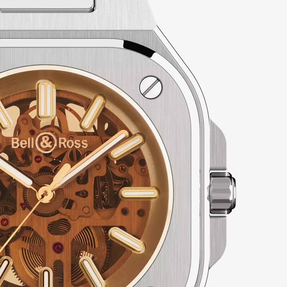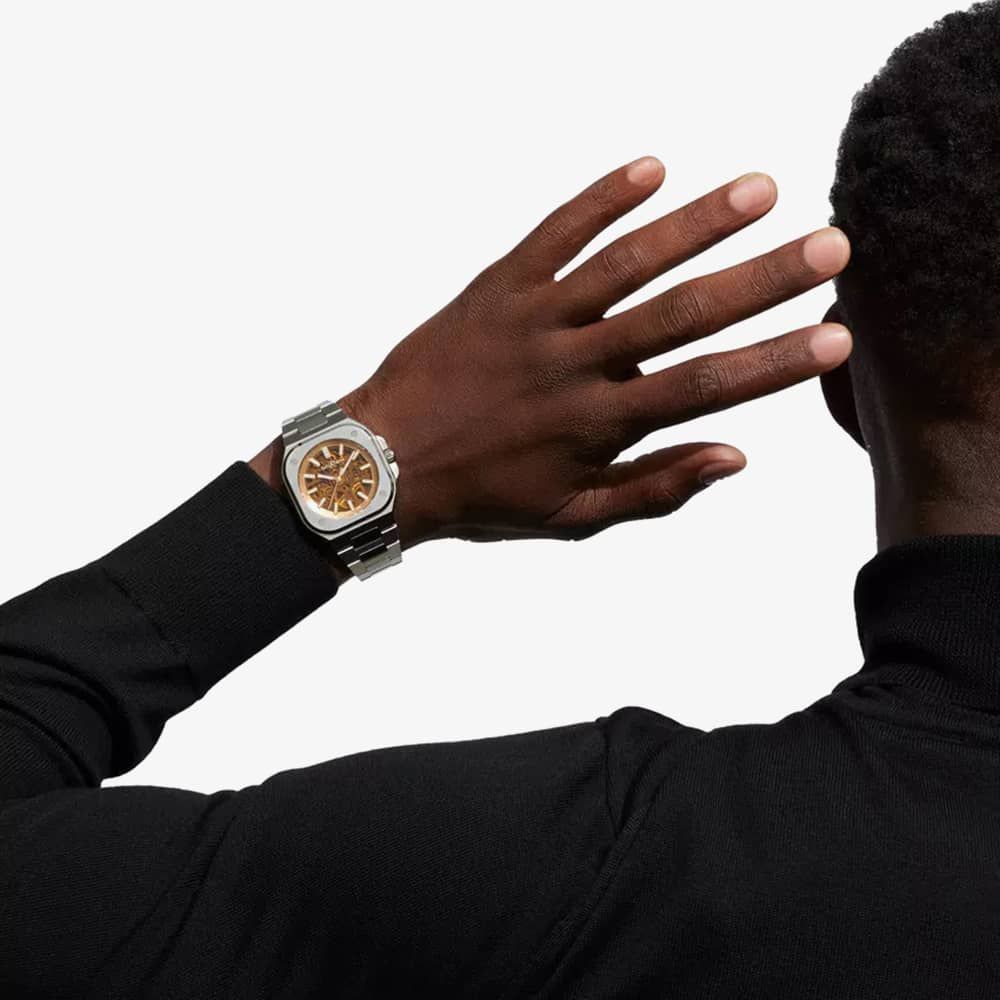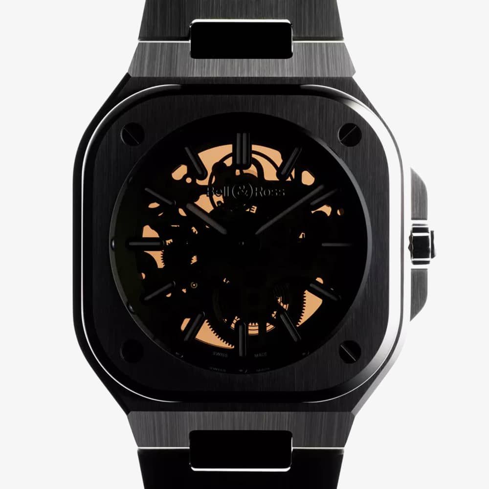 This BR 05 Skeleton is once again a outstanding design from Bell & Ross. With its signature square shape dial this isn’t a normal Bell & Ross. The almost transparent Orange sapphire glass lets you see the inns and outs of the movement. This modern take on the skeleton watch lets you see its power source all through the dial and even the movement winder through the clear caseback. THis watch is a 1 out of 500 limited edition
