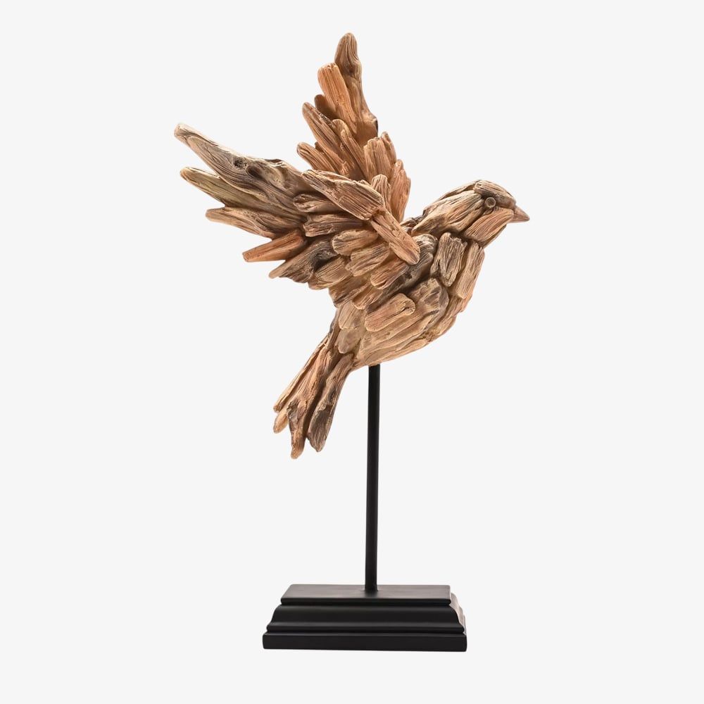 A charming decorative piece that brings a touch of nature indoors. This figurine features a delicately sculpted bird perched gracefully on a sleek stand, making it perfect for shelves, mantels, or tabletops.