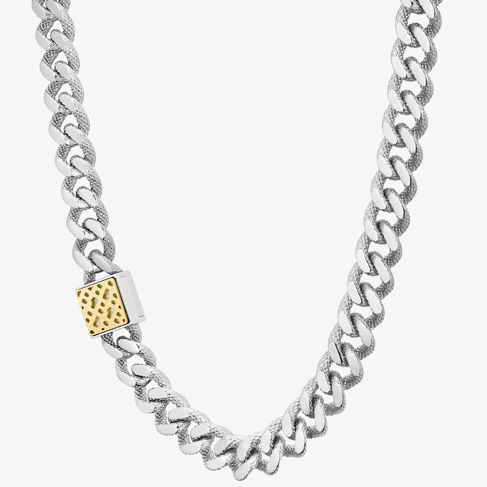 The BOSS Caly Necklace 1580396 has been created in stainless-steel and features a textured curb link chain design with a gold-plated square monogram-detailed magnetic fastening. This BOSS necklace is the ideal statement piece or is perfect for layering with other BOSS necklaces to suit your mood and style.