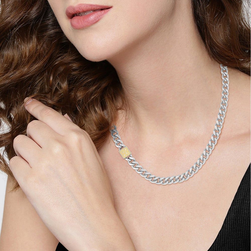 BOSS Caly Stainless-Steel Square Monogram Curb Necklace 1580396