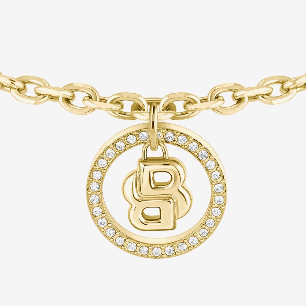 Elegant and modern, the BOSS Double B Divine Gold Tone Bracelet features a refined chain design centred with an open circle pendant set with sparkling white crystals and the signature double B motif. Measuring 16cm with a 2.5cm extender and finished with a lobster clasp, it’s a versatile piece that adds a touch of understated glamour to any look.