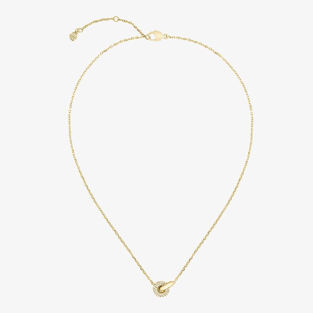 Elegant and meaningful, the BOSS Live Precious necklace features a gold-plated finish and a classic lobster clasp for secure wear. At its centre, two interlinked circles symbolize connection, one with a smooth, polished surface, the other adorned with sparkling white pave stones. A refined piece that blends subtle glamour with timeless style.