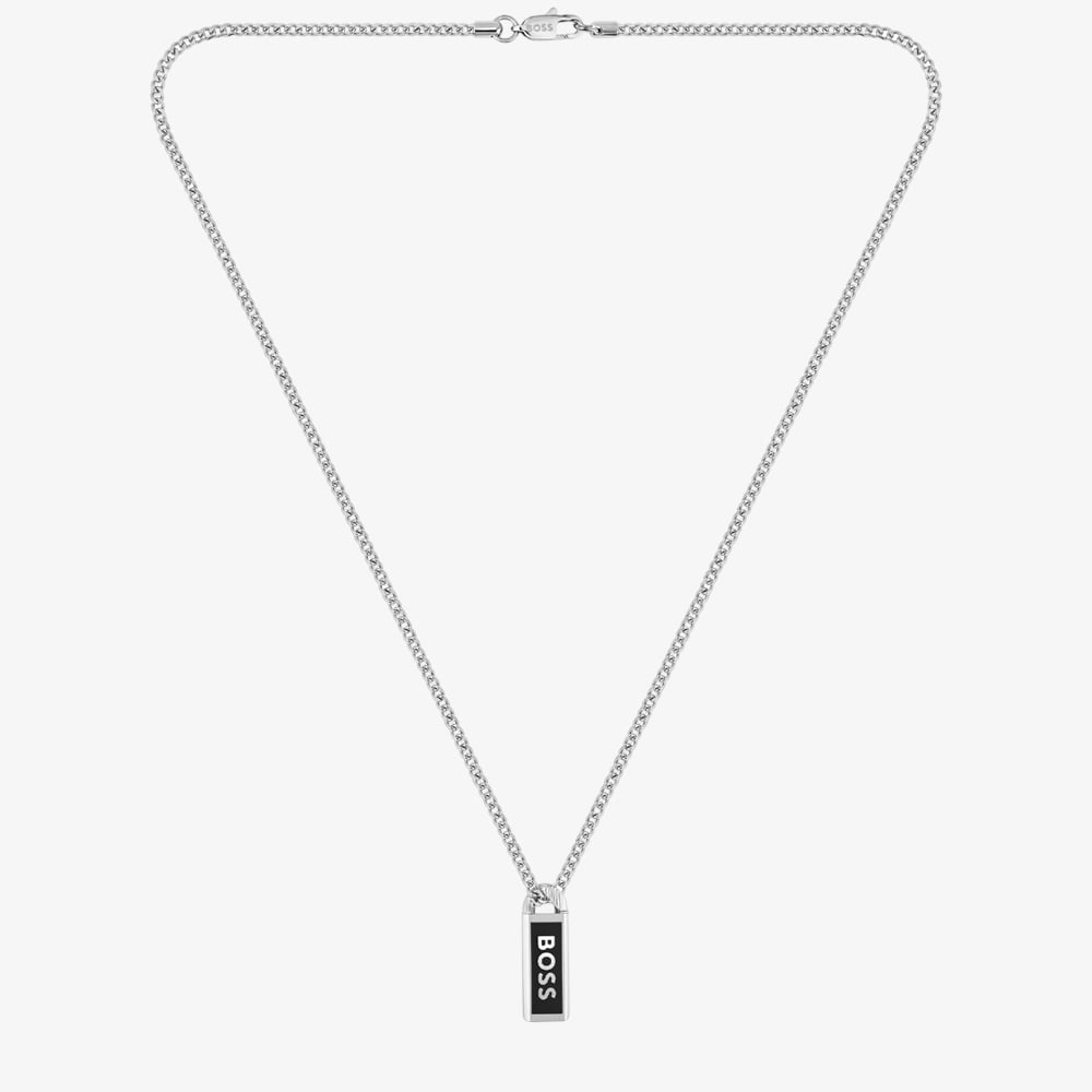 Crafted from sleek silver-tone metal, this necklace features a distinctive logo tag pendant, showcasing the iconic BOSS emblem. This necklace adds a touch of contemporary style to any outfit, whether casual or dressed up. It's a perfect piece for those who appreciate understated style and quality craftsmanship. This necklace makes a great gift or a stylish addition to your own jewellery collection.