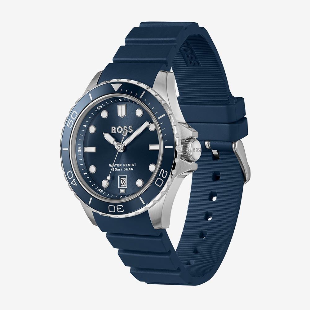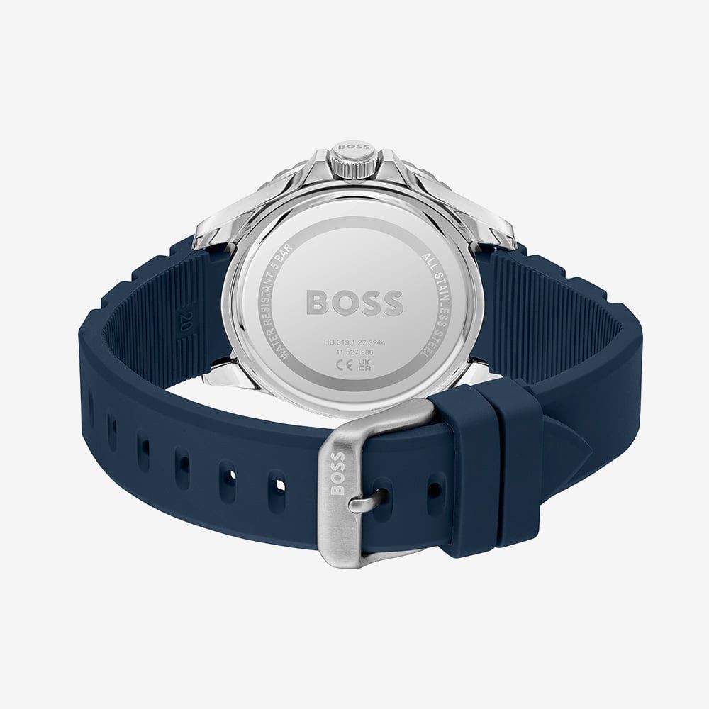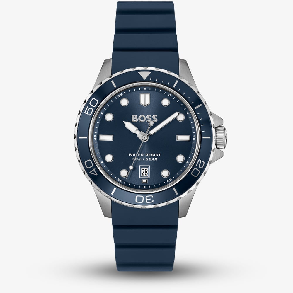 Designed for an active lifestyle, the BOSS Troper Sport combines performance and style. It features a stainless steel case paired with a bold blue silicone strap for comfort and durability. The matching blue dial and bezel create a cohesive, sporty look, enhanced by luminous white hands and hour markers for easy readability in any light. Perfect for everyday wear, this timepiece delivers a dynamic, modern edge.