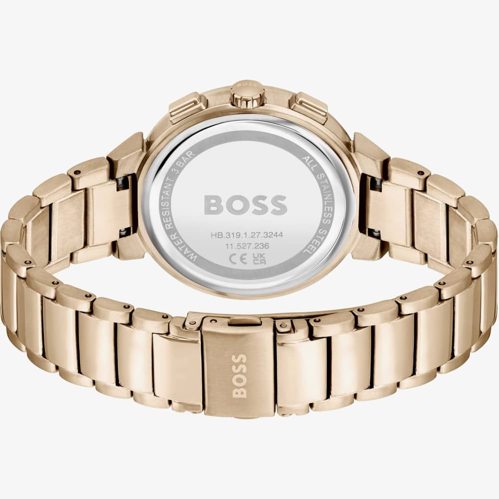 https://www.thbaker.co.uk/boss-one-rose-gold-plated-crystal-watch-1502678125883BOSS One Rose Gold Plated Crystal Watch 1502678https://www.thbaker.co.uk/media/catalog/product/2/3/23-28-202_grey.jpg196.95269GBPOutOfStockONE RGP BW RSE CHRN DL The BOSS 1502678 One watch combines a 38mm round-shaped rose gold-plated stainless steel case - and a rose gold-plated stainless steel bracelet with a push button deployment clasp. It has a rose gold-plated sunray analogue dial with luminescent hands, a date display, three chronograph sub-dials and white crystals set at each index, protected beneath mineral crystal glass. Power is generated by the quartz movement. This model also has a water resistance of up to 30 metres.BOSShttps://www.thbaker.co.uk/media/catalog/product/2/3/23-28-202_boss_02.jpghttps://www.thbaker.co.uk/media/catalog/product/2/3/23-28-202_boss_03.jpg7613272493185condition:Nodisc_no_stock:Yesex_display:NoNoYesNo2328202BOSS1502678LadiesOfficial BOSS Packaging2 Year BOSS WarrantyChronographNoWatchRose GoldStainless Steel BraceletStainless SteelRound11.0mm38mmAnalogueMineral Crystal GlassRose Gold30 metresQuartzPush Button Deployment ClaspNoNoYesNoYesYesNoBOSS One Rose Gold Plated Crystal Watch23-28-2022022-11-09 00:00:00[]2022-11-09