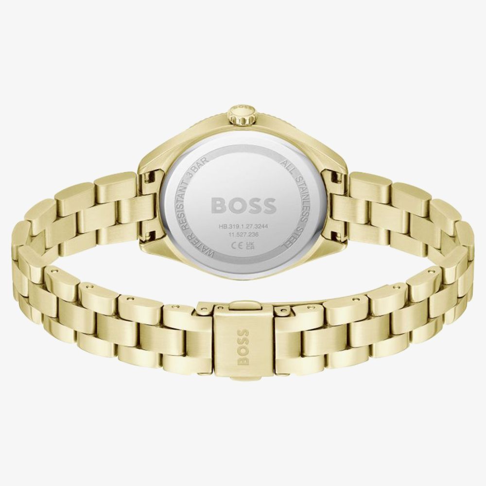 This exquisite timepiece gleams with its radiant gold case and a captivating green dial adorned by gold baton markers. The Boss Sage watch is the ultimate accessory for the modern woman who appreciates elegance with a dash of uniqueness.