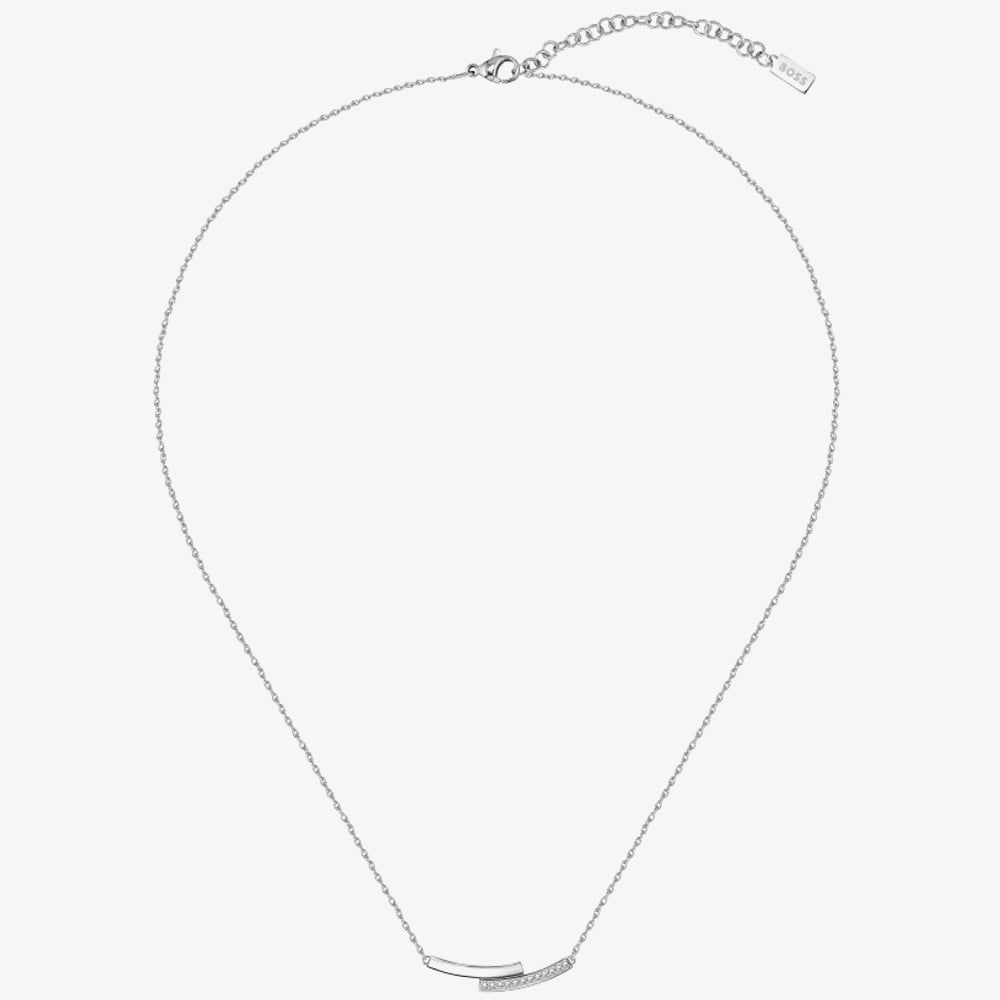 The BOSS Jewellery Saya Double Bar Necklace 1580279 is created in stainless steel. This silver-tone necklace features a fancy link chain with a double bar design set with sparkling cubic zirconia stones. This necklace measures 51cm in length & is finished with an adjustable lobster fastening.