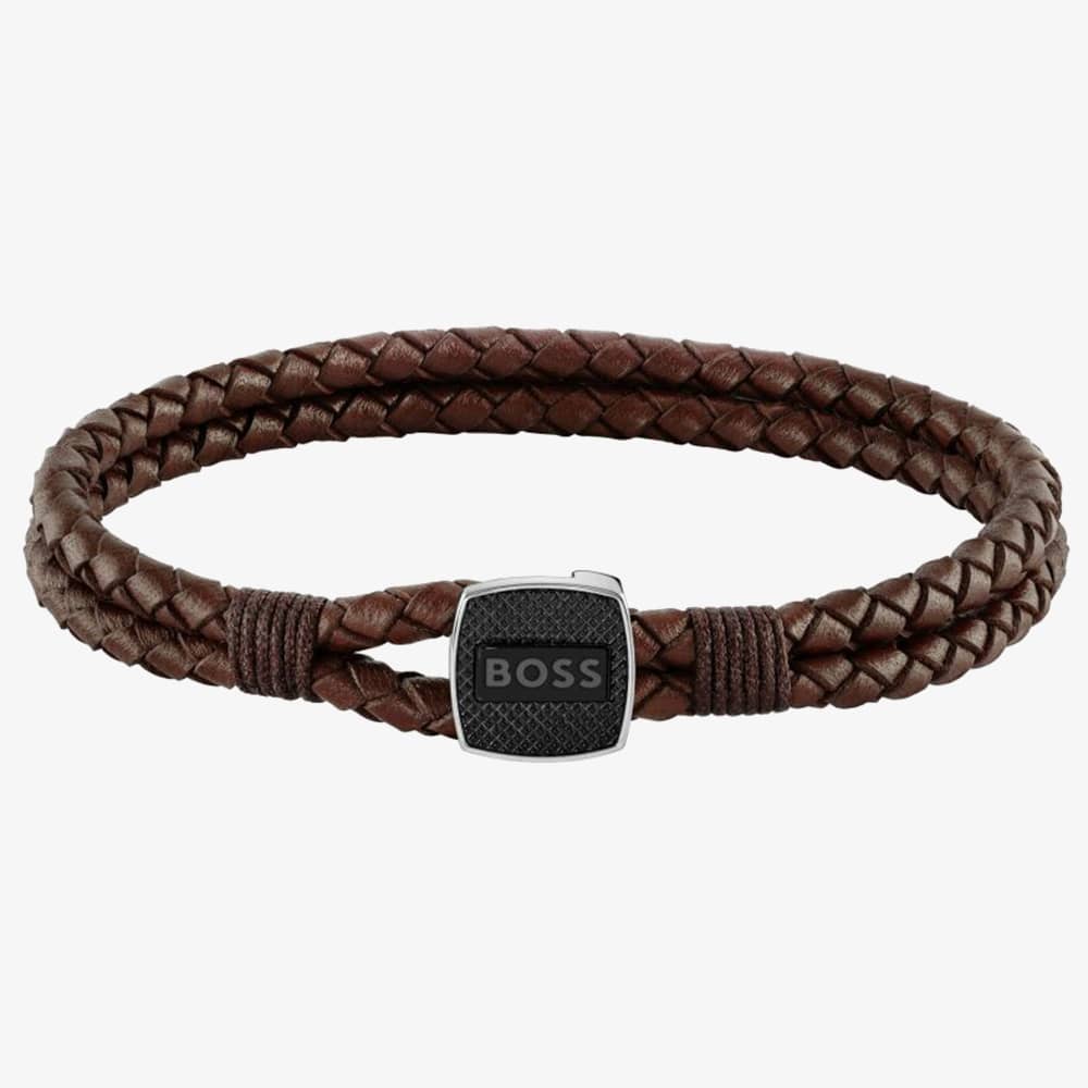 The BOSS Jewellery Seal Brown Leather Bracelet 1580048M is created in brown leather. This bracelet features a two-row braided leather design, measures 21cm in length & is finished embossed stainless-steel with black ion-plating loop fastening.