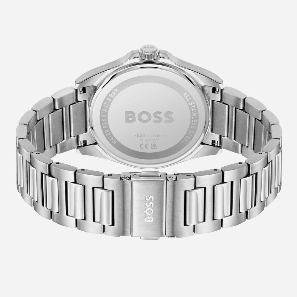The Boss Silver Stainless Steel Watch with a Black Dial offers a sleek and modern design that effortlessly combines style and functionality. The minimalist black dial provides a striking contrast against the polished silver stainless steel case, featuring simple, easy-to-read markers and hands. This watch embodies understated elegance, making it a versatile accessory for both formal and casual wear. With its durable stainless steel construction and classic design, this timepiece is a perfect blend of sophistication and everyday practicality.