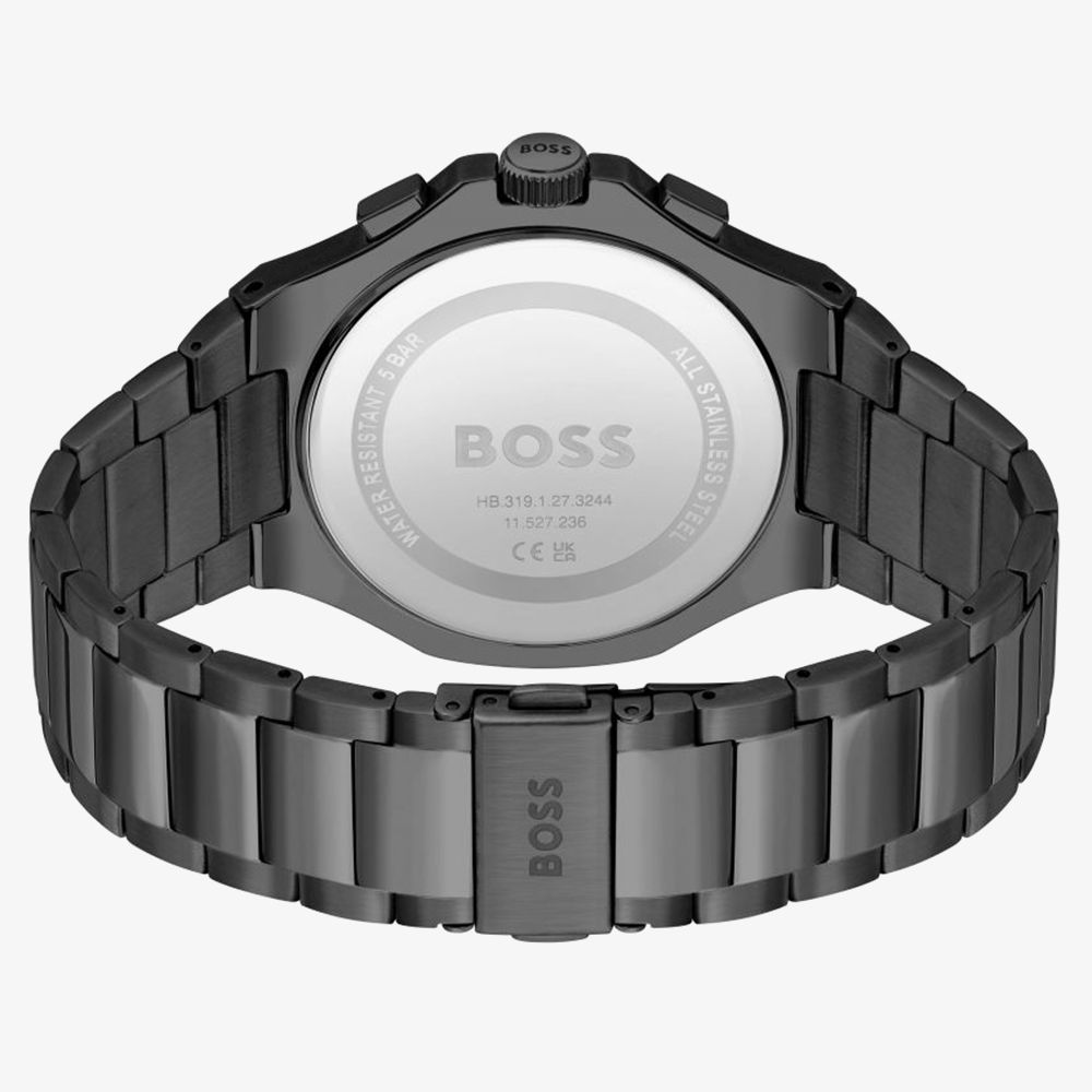 This timepiece is crafted in black stainless steel, with a sleek black dial and a striking rose gold octagonal bezel. The chronograph components also gleam in rose gold, adding a touch of luxury to this dynamic design. The Boss Taper watch is the ideal accessory for the modern man who values precision and style.
