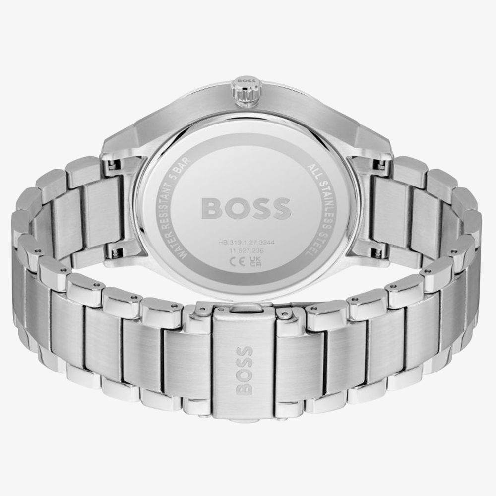 Crafted in polished silver stainless steel, this timepiece features a sophisticated blue dial adorned with a functional chronograph. With its sleek design and chronograph features, the Boss Tyler watch is the ideal companion for the modern man who values both functionality and elegance.