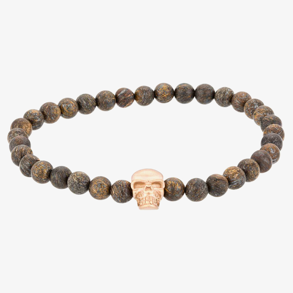 Bourne and Wilde Mens Bronzite and Rose Skull Bracelet OSB-1608RGBN