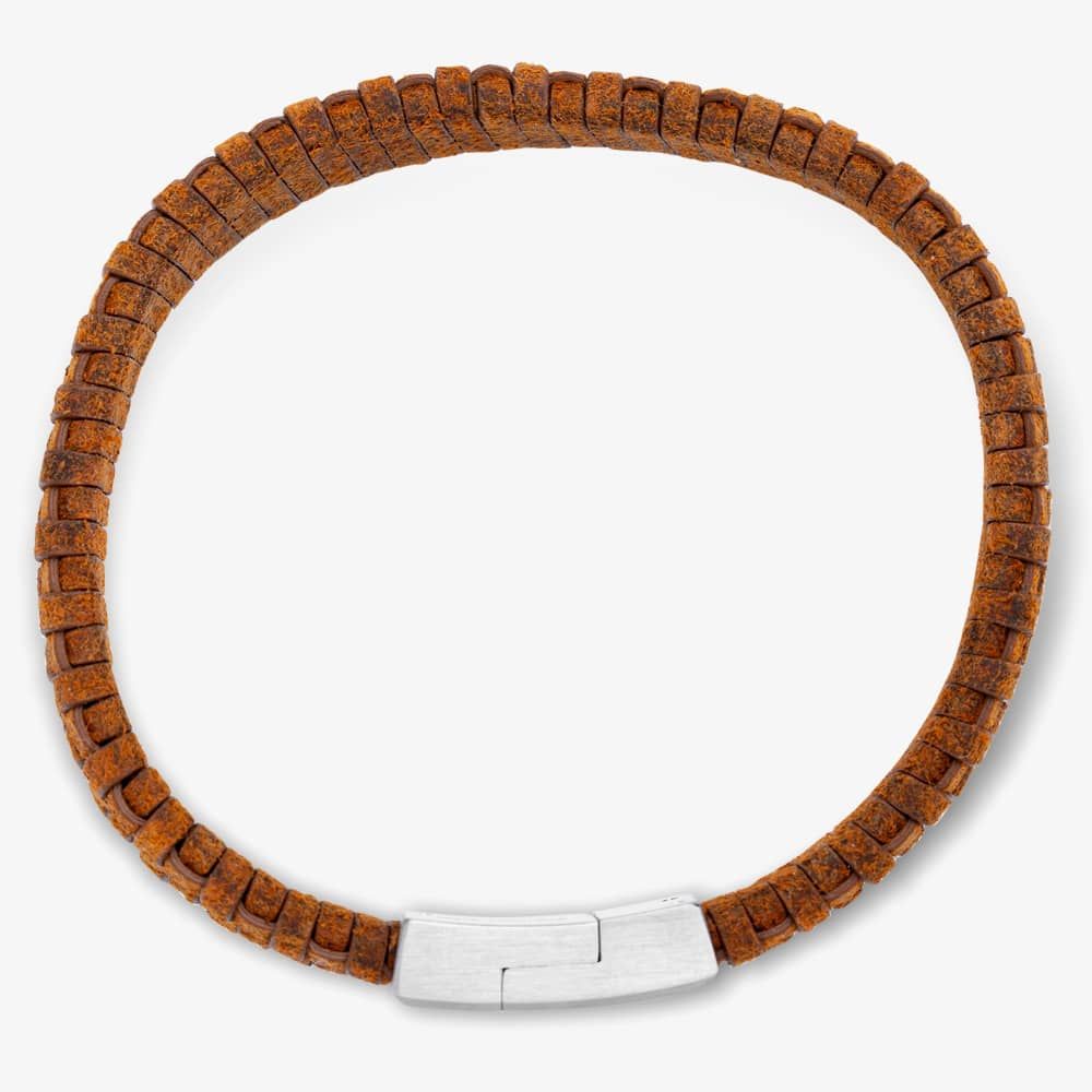 The Bourne and Wilde OSB-2257SBN bracelet is made from strands of tan brown leather which have been intricately woven together and fastens using a patterned stainless steel clasp.