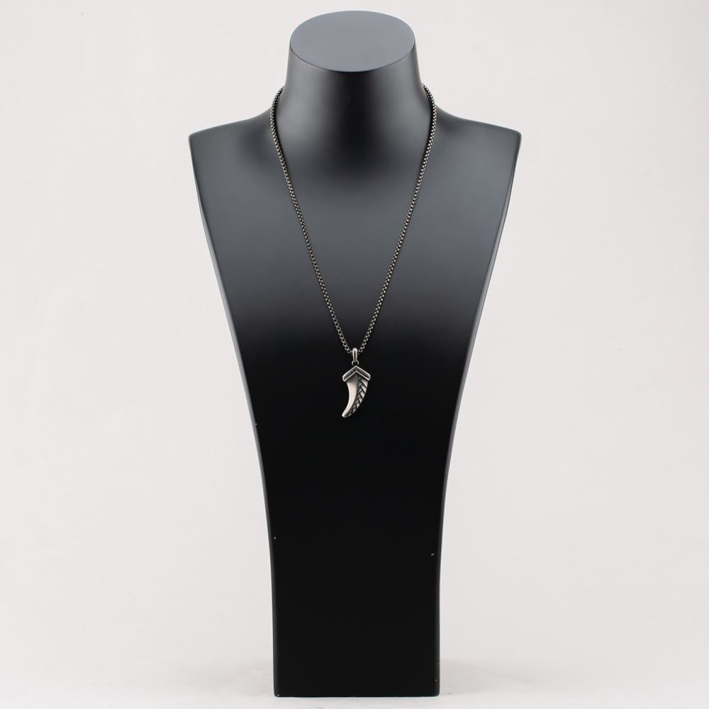Bold and modern, this necklace features a sleek black tusk pendant on a durable stainless steel chain, secured with a lobster clasp. Perfect for everyday style with an edge.