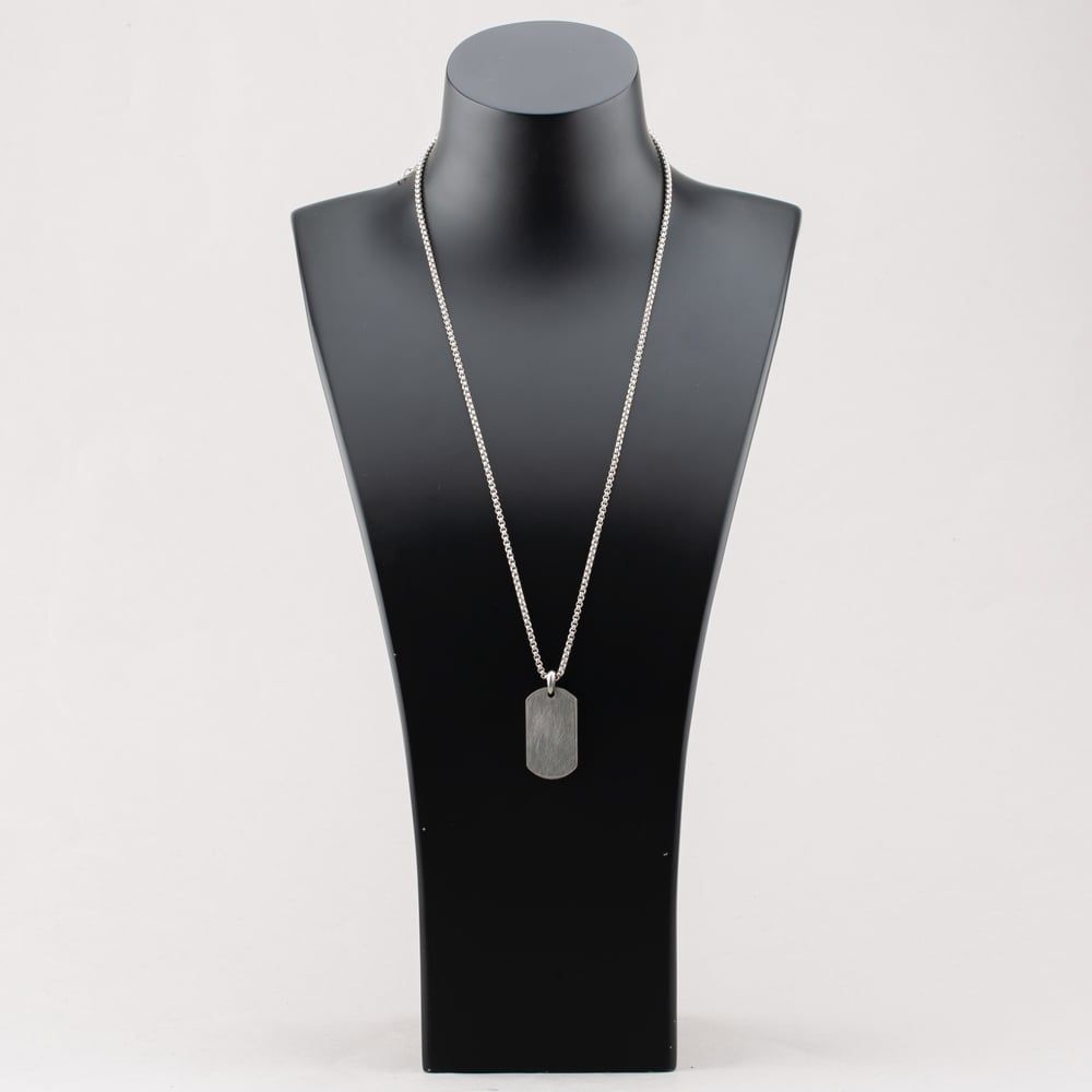 Sleek and durable, this stainless steel dog tag necklace features a 60–65 cm chain with a secure lobster clasp. Perfect for everyday wear.