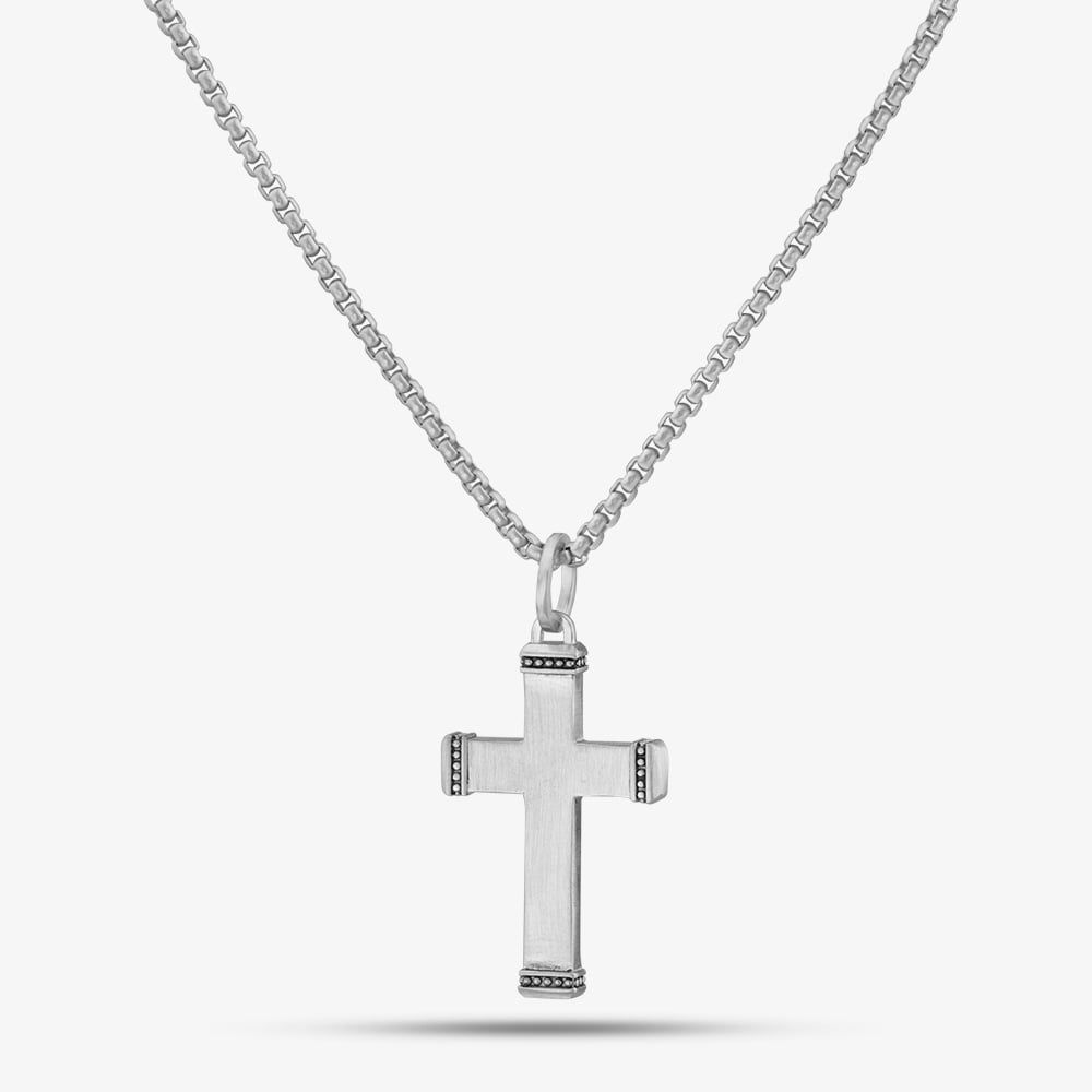 Bourne and Wilde Stainless Steel Reptile Pattern Cross Pendant Necklace OSN-427S-BX