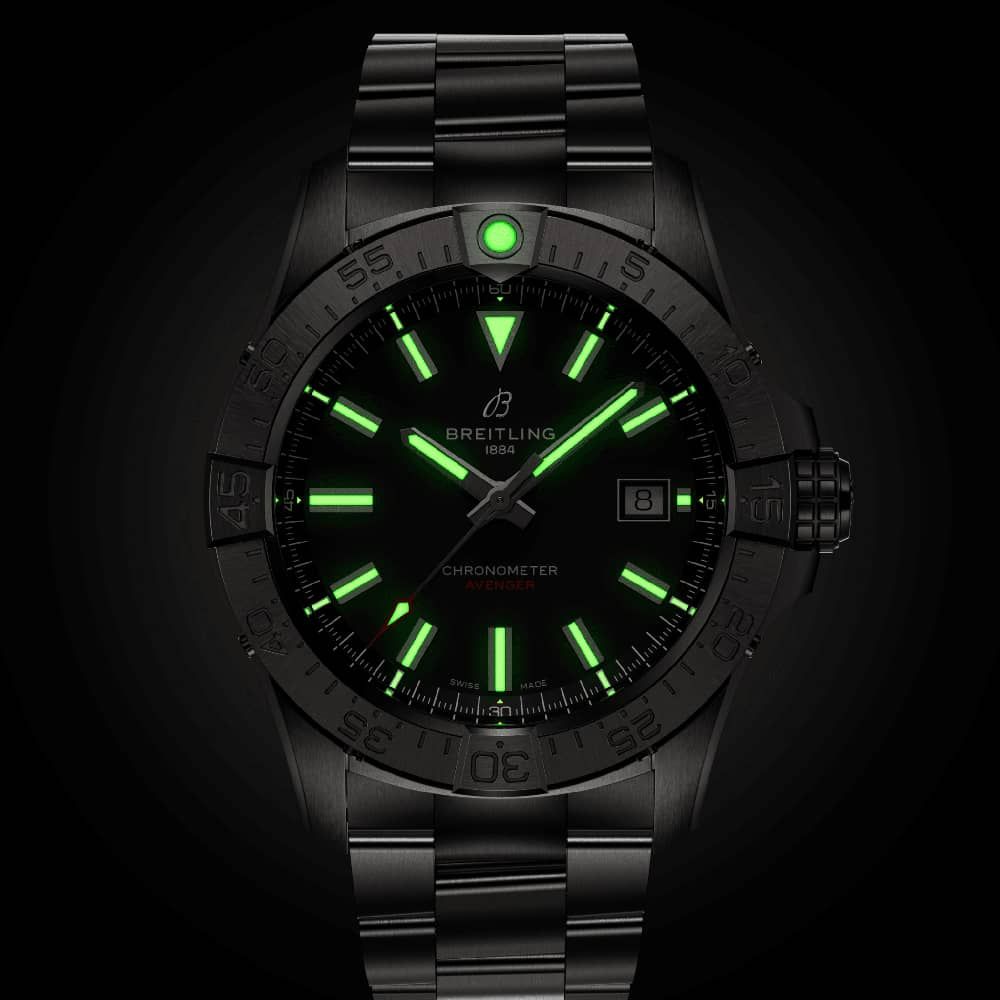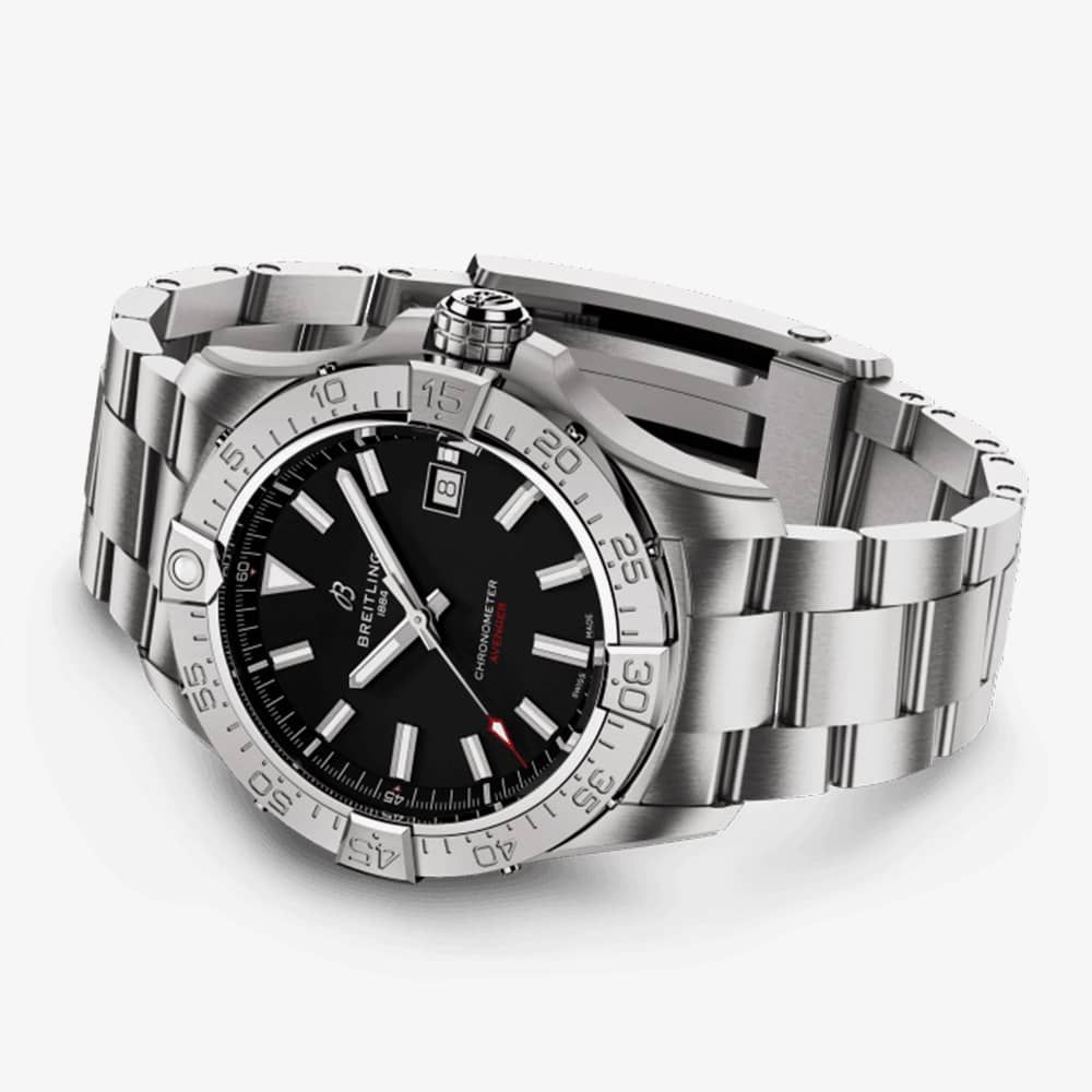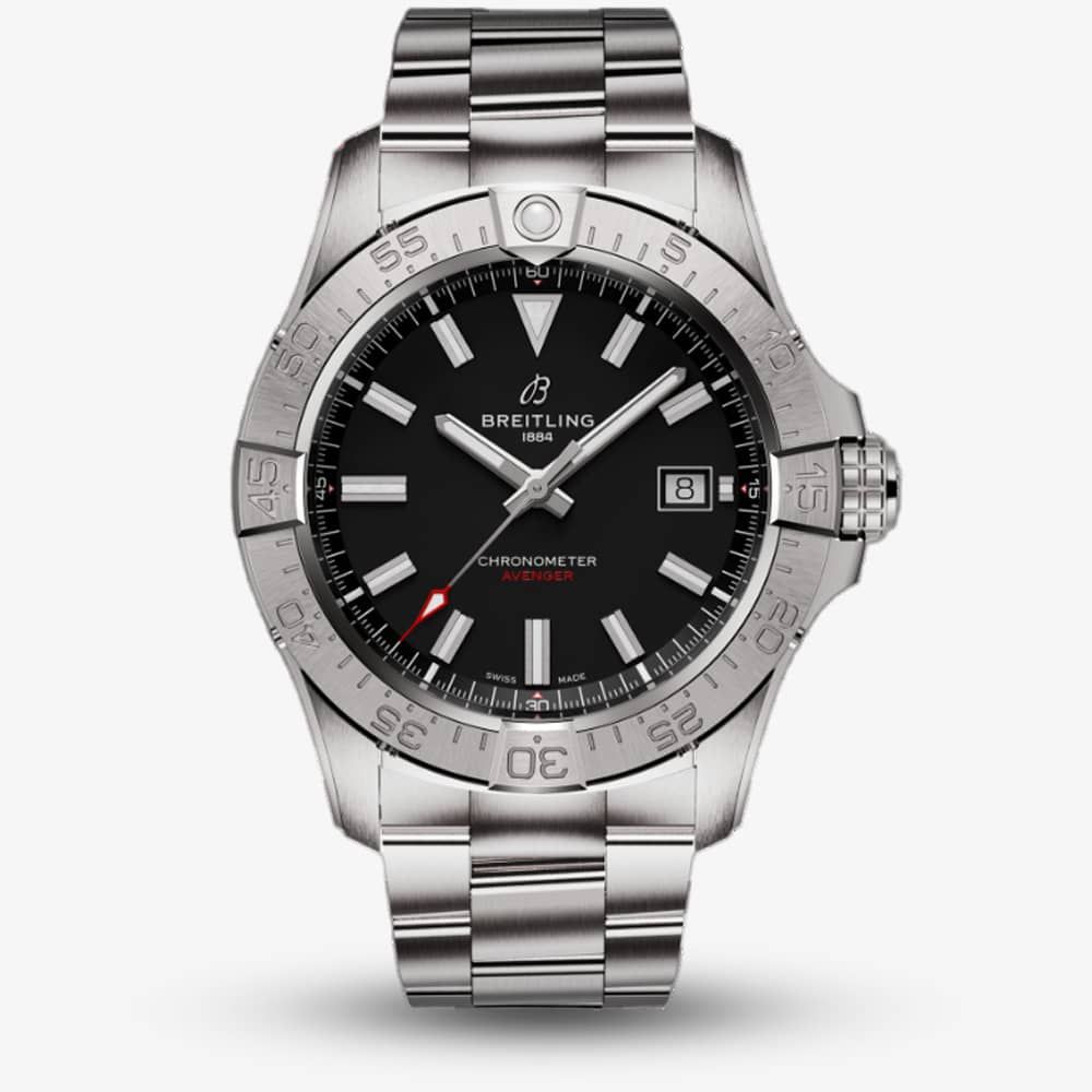 The Breitling Avenger Automatic 42 features a black dial drawn from military uniform shades with luminescent batons and a red second tacker. Featured is a 60-minute uni-directional bezel with protective 4-rider tabs and a date window at position three. This timepiece boasts precision with its Breitling Calibre 17 automatic movement. You don’t need Air Force credentials to appreciate its bold design, exceptional resilience, and next-level functionality. Get ready for the new Avenger.