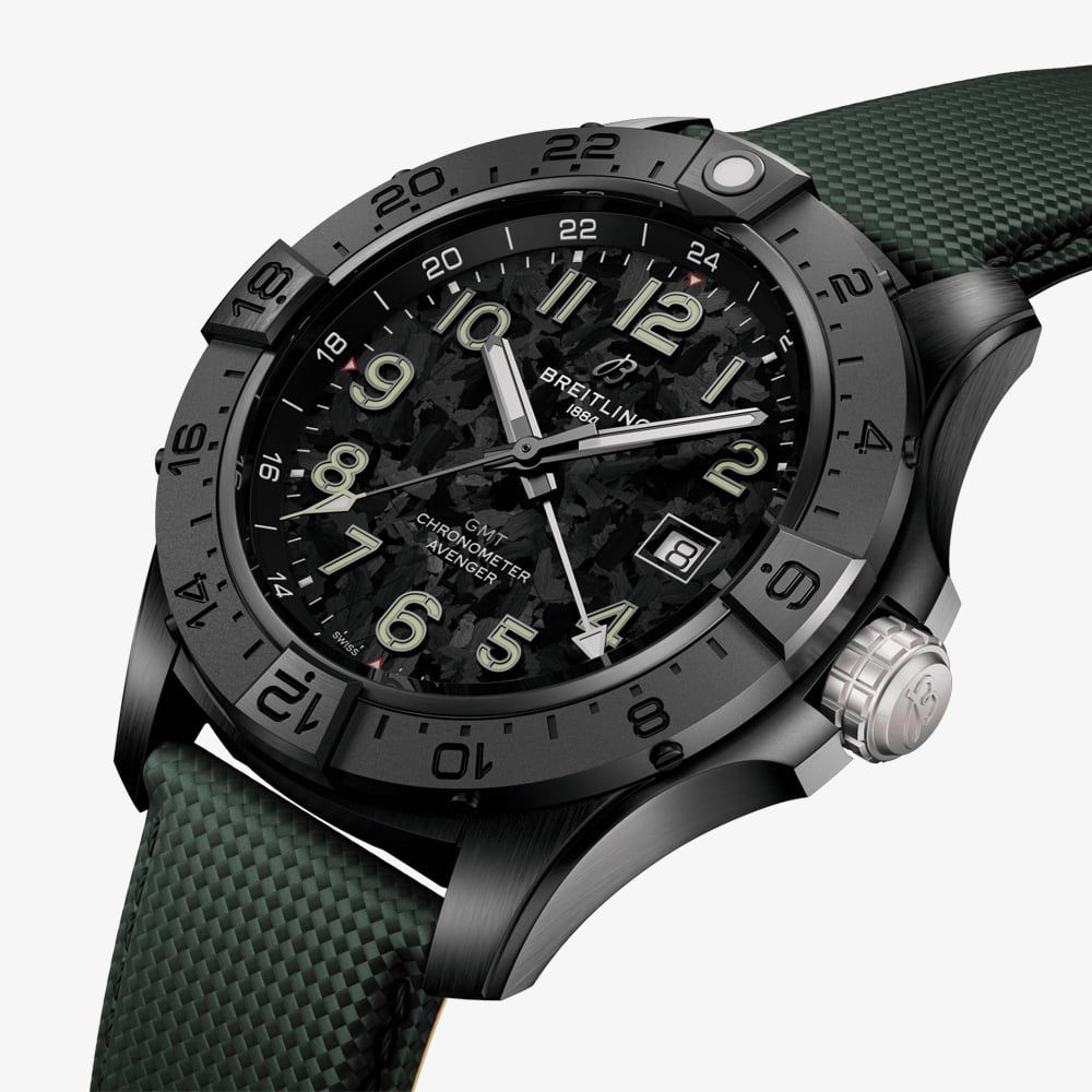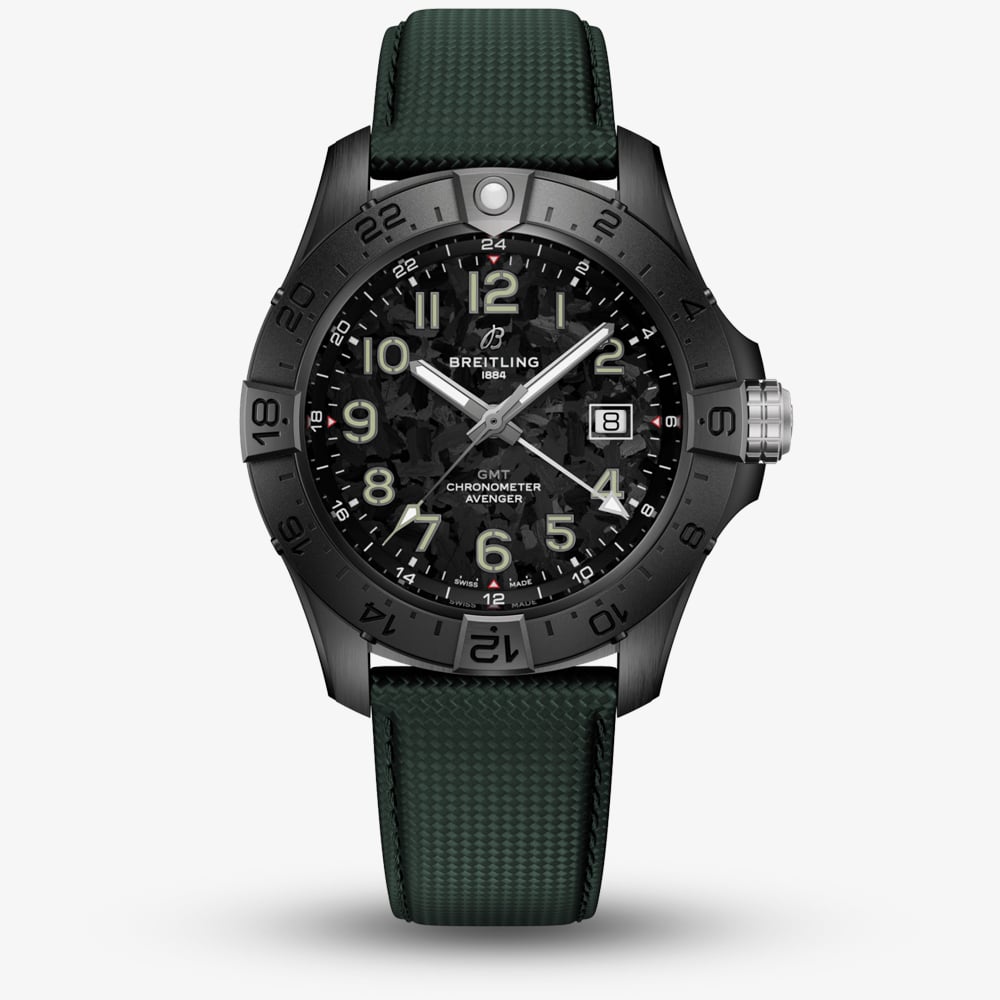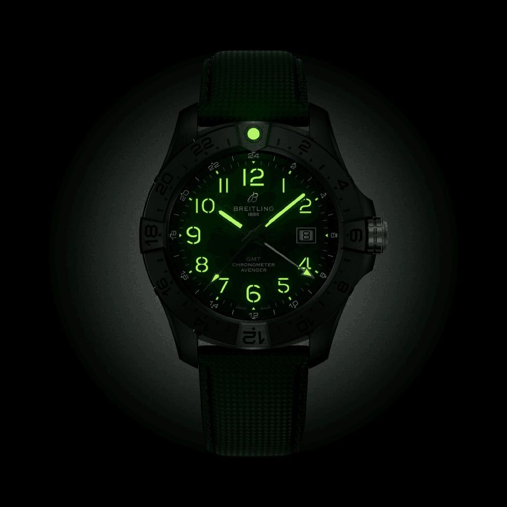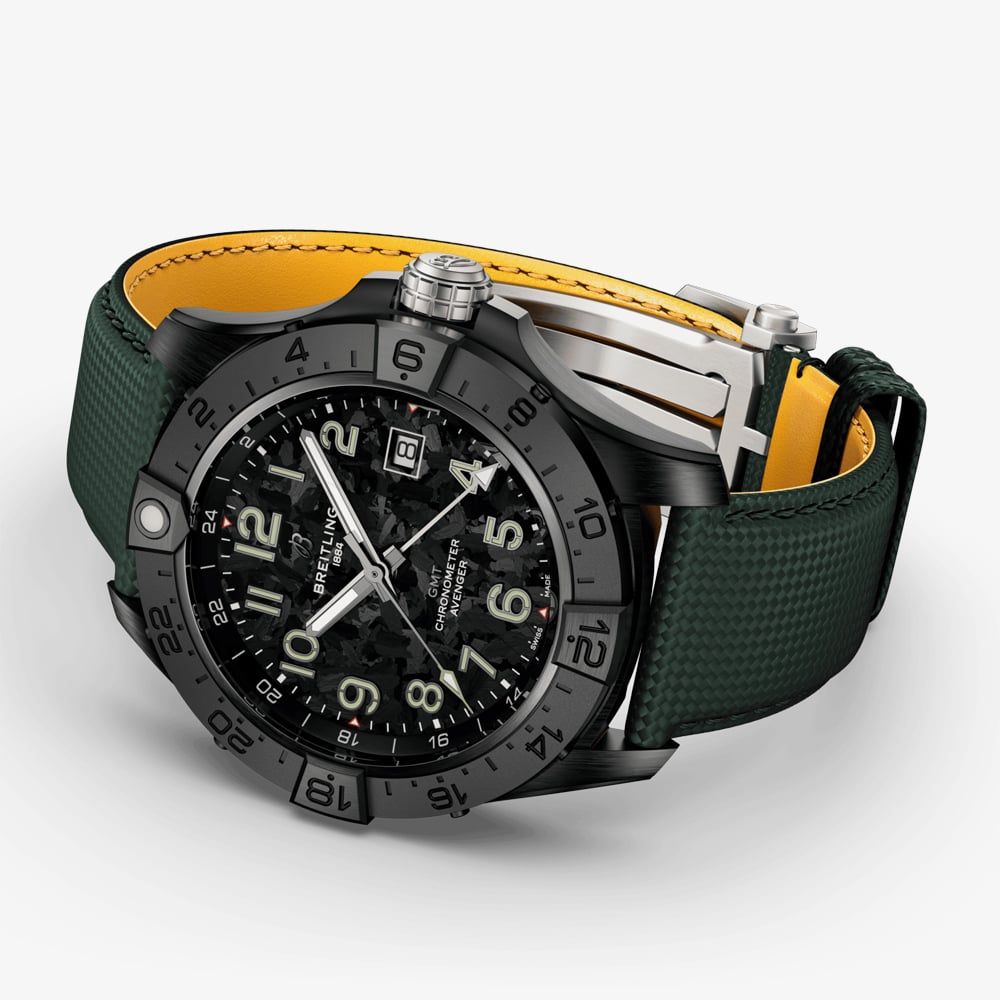 Combining performance with modern aviation style, the Night Mission model features a ceramic-titanium blend for enhanced durability and a sleek look. Its dial colours are inspired by military uniforms, reinforcing its rugged appeal. Featuring a pinion bezel with 24-timezone indication . The ceramic model is paired with a military leather strap and a titanium folding-pin buckle, offering a strong yet refined design built for both style and resilience.