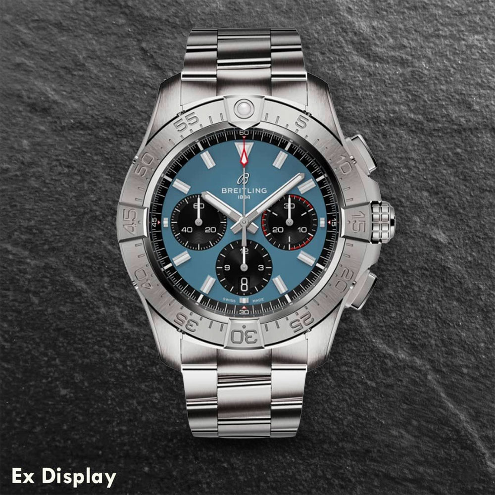 The Breitling Avenger B01 Chronograph 44 features a blue dial drawn from military uniform shades with luminescent batons and a red second tacker. Featured is a 60-minute uni-directional bezel with protective 4-rider tabs, three chronograph sub-dials, and a date window integrated into the middle dial. This timepiece boasts precision with its Breitling Calibre 01 automatic movement. You don’t need Air Force credentials to appreciate its bold design, exceptional resilience, and next-level functionality. Get ready for the new Avenger.