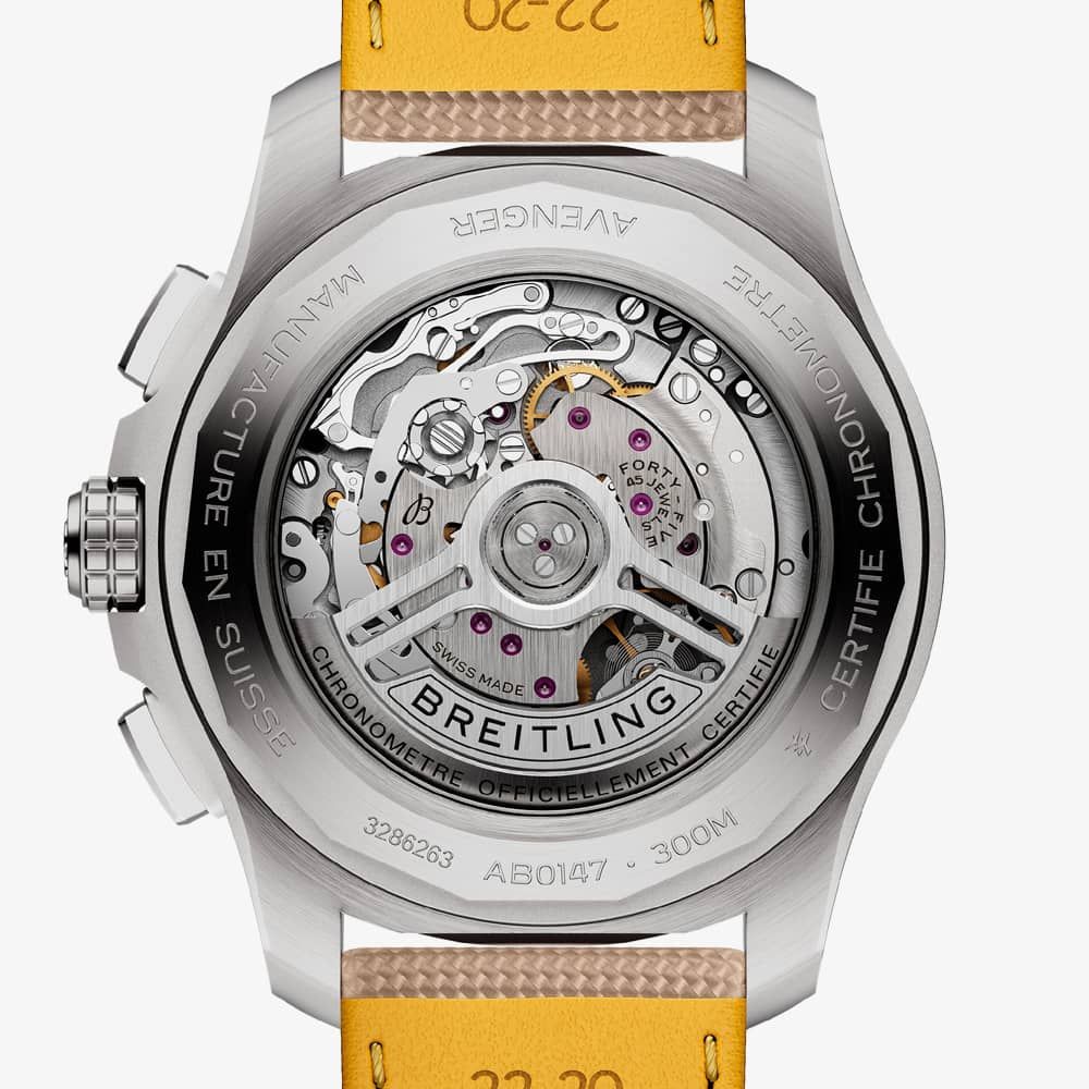 • 300 metre water resistance.Breitlinghttps://www.thbaker.co.uk/media/catalog/product/2/4/24-12-25113820_breitling_02.jpghttps://www.thbaker.co.uk/media/catalog/product/2/4/24-12-25113820_breitling_03.jpghttps://www.thbaker.co.uk/media/catalog/product/2/4/24-12-25113820_breitling_04.jpghttps://www.thbaker.co.uk/media/catalog/product/2/4/24-12-25113820_breitling_model_01.jpghttps://www.thbaker.co.uk/media/catalog/product/2/4/24-12-25113820_breitling_model_02.jpghttps://www.thbaker.co.uk/media/catalog/product/2/4/24-12-25113820_breitling_model_03.jpgadd-to-cartcondition:Nodisc_no_stock:Yesex_display:Nosearch_keywords:waterproofNoYesNowaterproofBreitlingAB0147101A1X1MensOfficial Breitling Packaging5 Year Breitling WarrantyPilotNoWatchBrownLeather StrapStainless SteelRound44mmAnalogueSapphire Crystal GlassBrownBrown300 metresAutomaticFold Over ClaspNo StoneNo StoneNoNoYesYesYesYesNo241225113820Breitling Avenger B01 Chronograph 44 Sand Leather Strap Watch24-12-251138202023-10-27 00:00:00[]2023-10-27