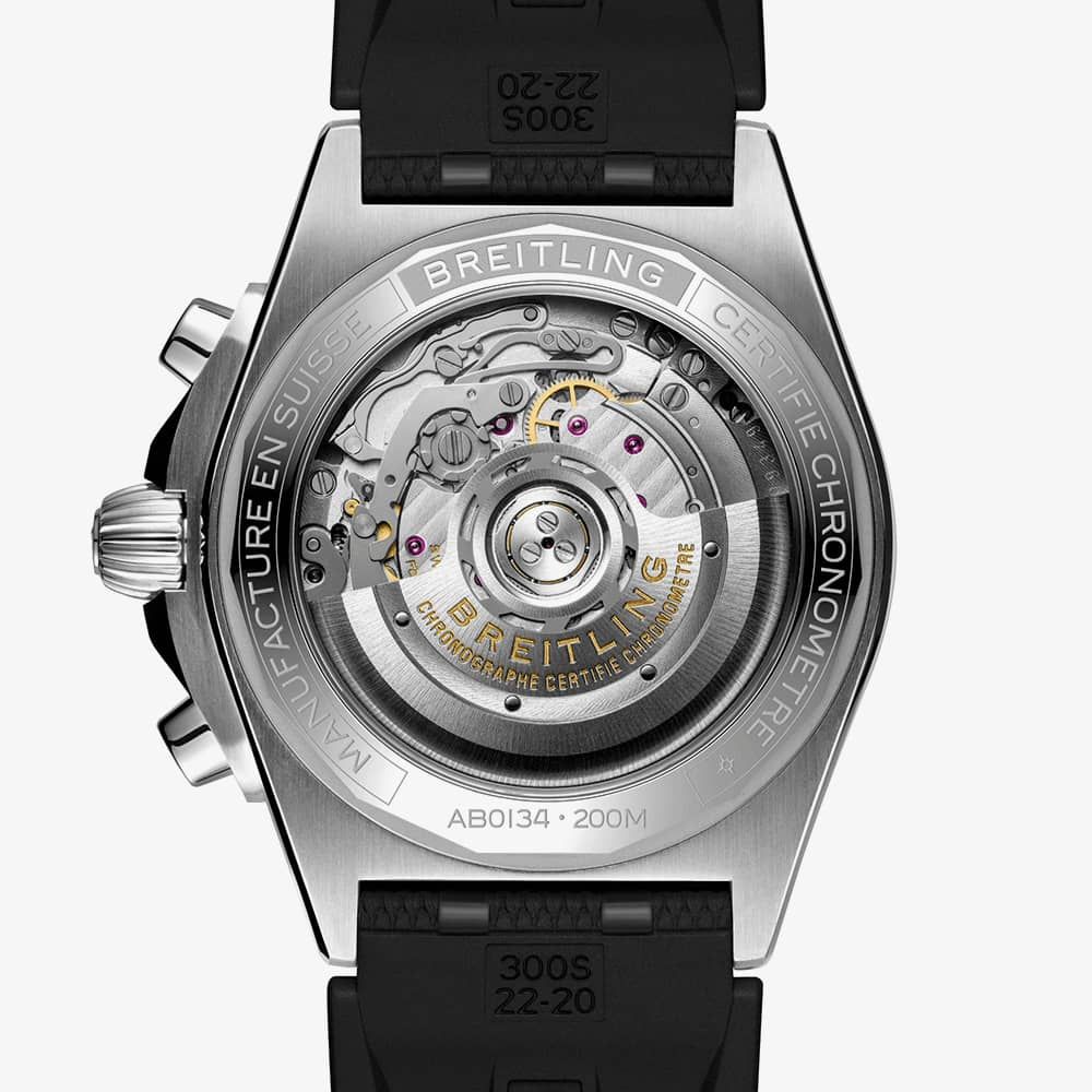 The Chronomat features a 42mm case and the iconic bezel with four rider tabs, it is matched with the signature “Rouleaux” bracelet in metal or rubber and is powered by the in-house Breitling Manufacture Caliber 01, a COSC-certified chronometer.
