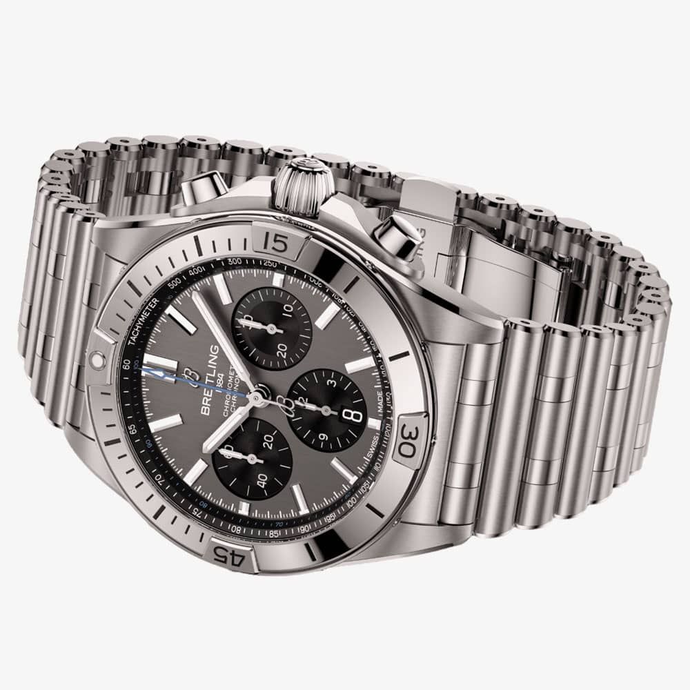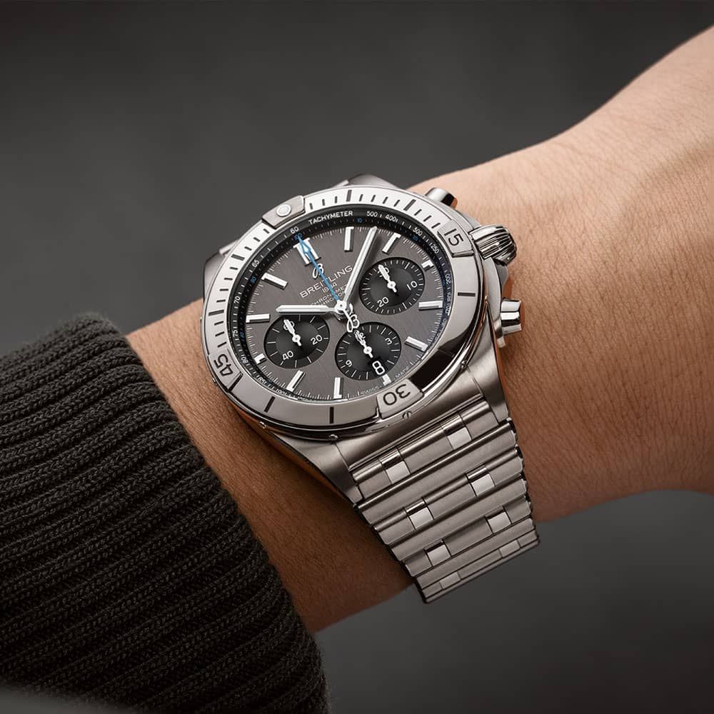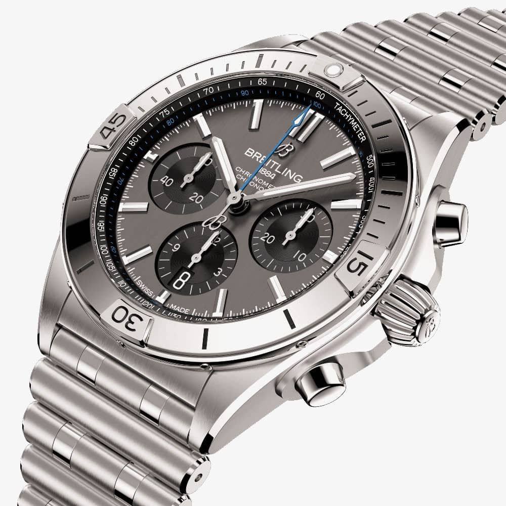 Based on the Frecce Tricolori watch, which had been developed and launched in 1983 in collaboration with the famed Italian aerial squadron, the Chronomat celebrated Breitling's centenary in style and marked the return of the mechanical chronograph to its rightful place at the brand which had built its global reputation on these incredible watches. This watch is powered by the in-house Breitling Manufacture Caliber 01, a COSC-certified chronometer.