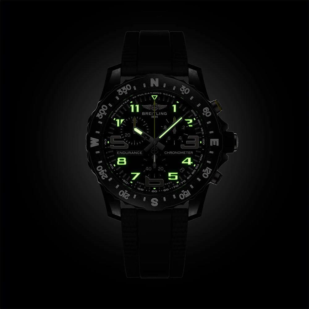 The Endurance Pro is the ultimate athleisure watch, blending innovative technology with vibrant design. Ideal for active men and women, it combines lightweight comfort with sporty style. Featuring an ultra-light Breitlight case—3.3 times lighter than titanium and resistant to scratches and corrosion—it’s both durable and hypoallergenic. The Endurance Pro is powered by COSC-certified SuperQuartz chronographs, ensuring exceptional precision for workouts and everyday wear.