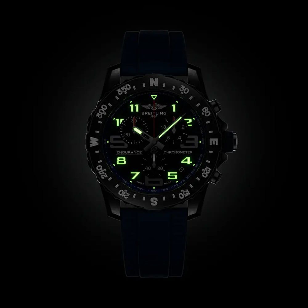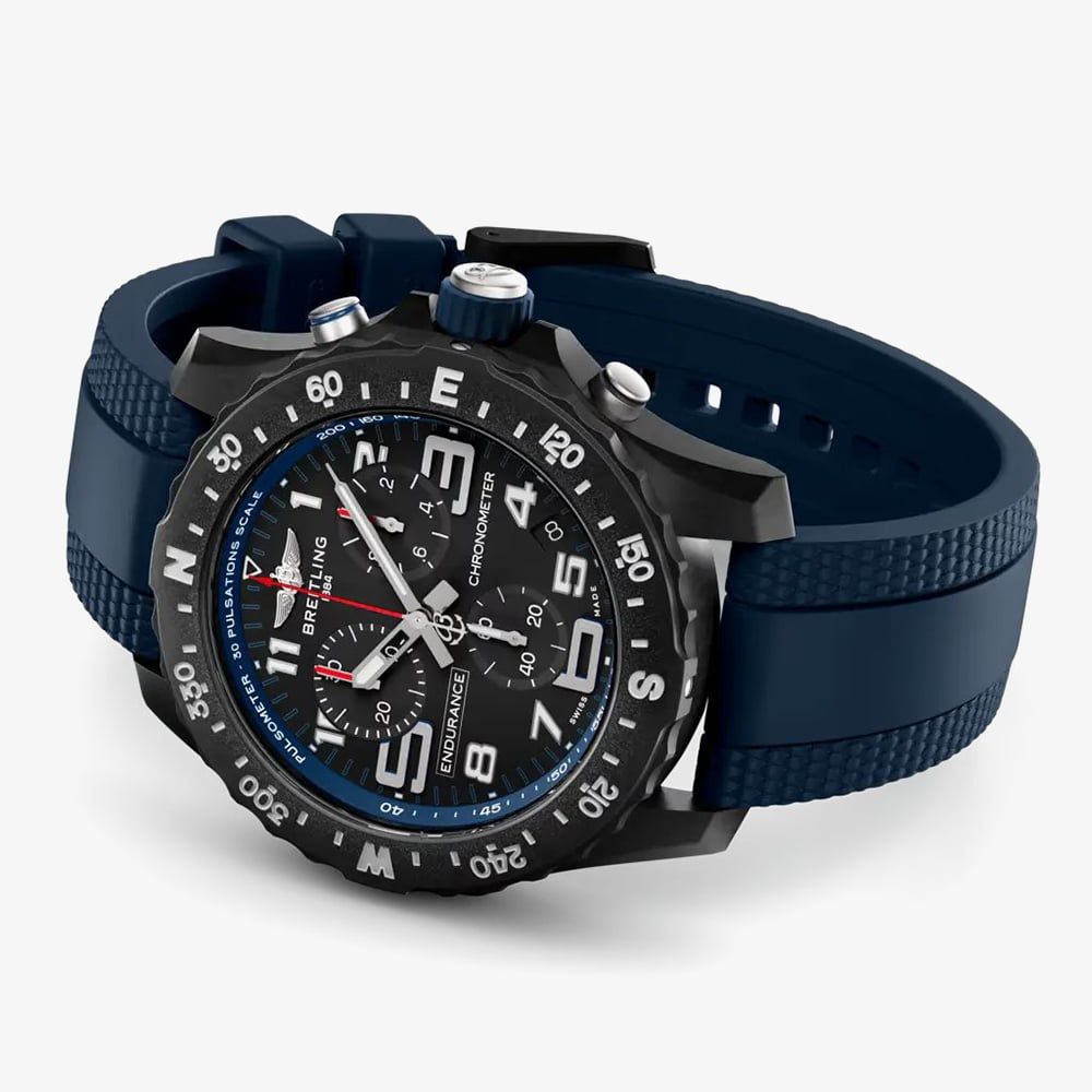 The Endurance Pro is a lightweight, versatile sports chronograph blending cutting-edge technology with bold design, ideal for active lifestyles. Crafted with Breitlight®, an ultra-light, Swiss-made material 3.3 times lighter than titanium and 5.8 times lighter than stainless steel, it’s non-magnetic, thermally stable, hypoallergenic, and highly resistant to scratches and corrosion. The Endurance Pro is powered by COSC-certified SuperQuartz™ Caliber 82 and 83 movements, ensuring exceptional precision for workouts or daily wear