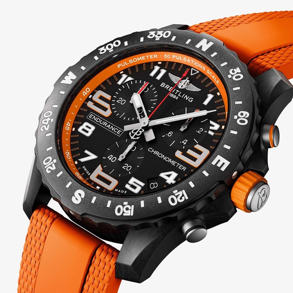 The Endurance Pro is a versatile sports chronograph watch, perfect for both athletes and everyday wear. Designed for active men and women, it combines innovative technology with vibrant style. Its ultra-light Breitlight® case is 3.3 times lighter than titanium, non-magnetic, hypoallergenic, and highly resistant to scratches and corrosion. This watch features colourful dials and rubber straps with a Breitlight® tang buckle. Powered by COSC-certified SuperQuartz™ chronographs, the Endurance Pro offers exceptional precision and performance, making it the ultimate athleisure watch.