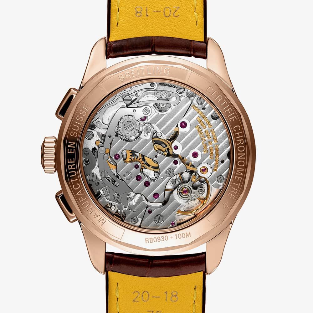 The Breitling RB0930371G1P1 Premier B09 Chronograph 40 watch combines a 40mm round-shaped 18ct rose gold case and a brown alligator leather strap with a fold-over clasp. This modern watch has a champagne sunray analogue dial with 2 chronograph sub-dials. It has a champagne analogue sunray dial with two 18k rose gold luminescent hands and a second tracker, which is protected beneath convex sapphire crystal glass, glare-proofed on both sides. Power is generated by Breitling B09 Automatic movement, with a power reserve of approximately 70 hours. This model also has a water resistance of up to 100 metres.