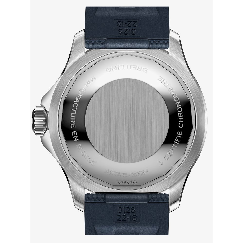 The Breitling A17375E71C1S1 watch combines a 42mm round shaped stainless steel case and blue rubber strap with a traditional buckle. It has a blue analogue dial with Super-LumiNova coated hands which is protected beneath anti-reflective coated scratch resistant sapphire crystal glass. Power is generated by the automatic movement with a 38 hour power reserve. Watch is also shock, sand and saltwater-resistant. This model also has a water resistance of up to 300 metres.