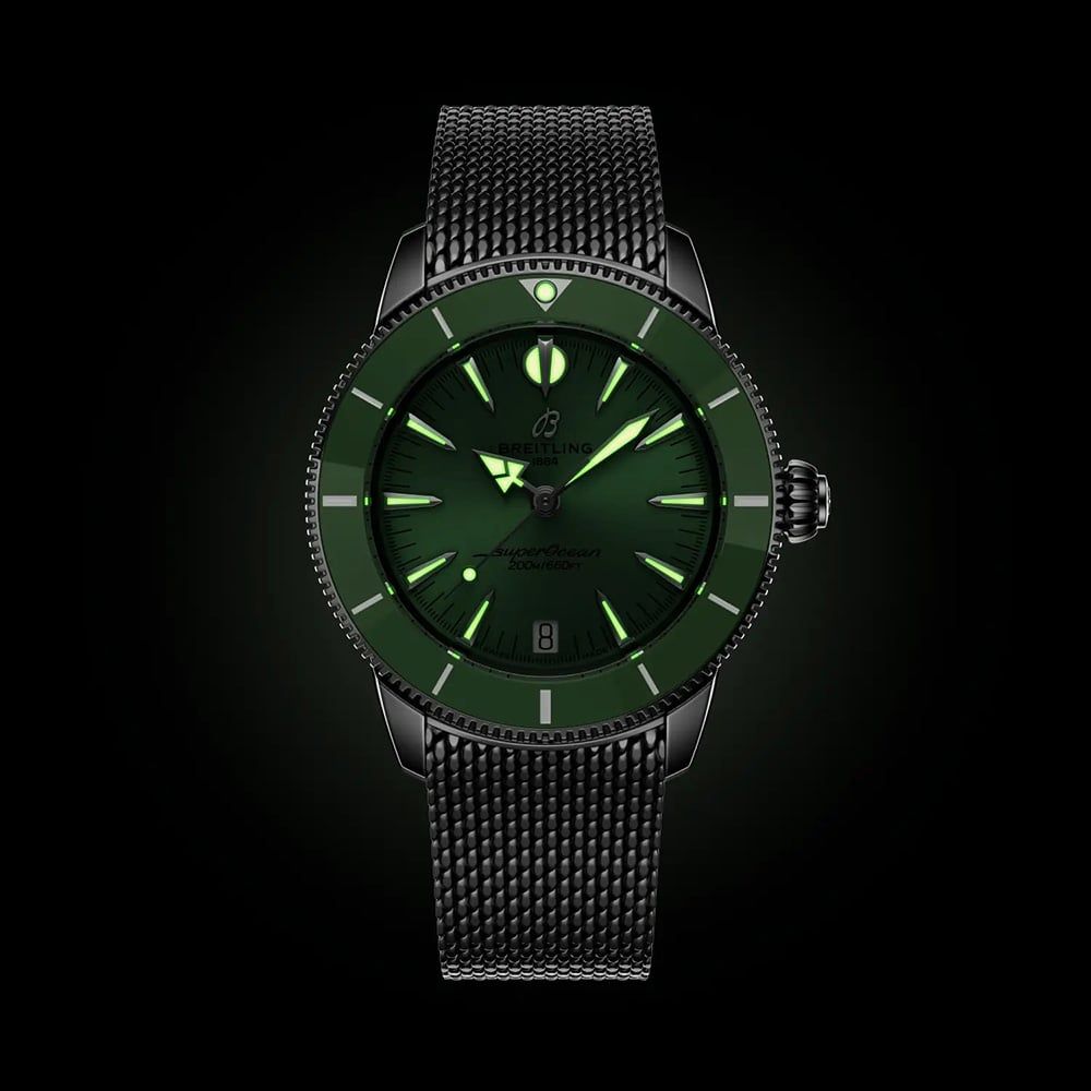 This timepiece features a polished 36mm stainless steel case paired with a stainless steel strap that offers durability and a sporty edge. The rich green dial, enhanced by luminous hands and markers, ensures excellent readability in any light, while the unidirectional rotating bezel helps track elapsed time with ease—ideal for diving and everyday adventures alike. Powered by Breitling’s precise automatic movement, this watch guarantees reliability and exceptional craftsmanship. Paired with a durable stainless steel bracelet for a comfortable and secure fit.