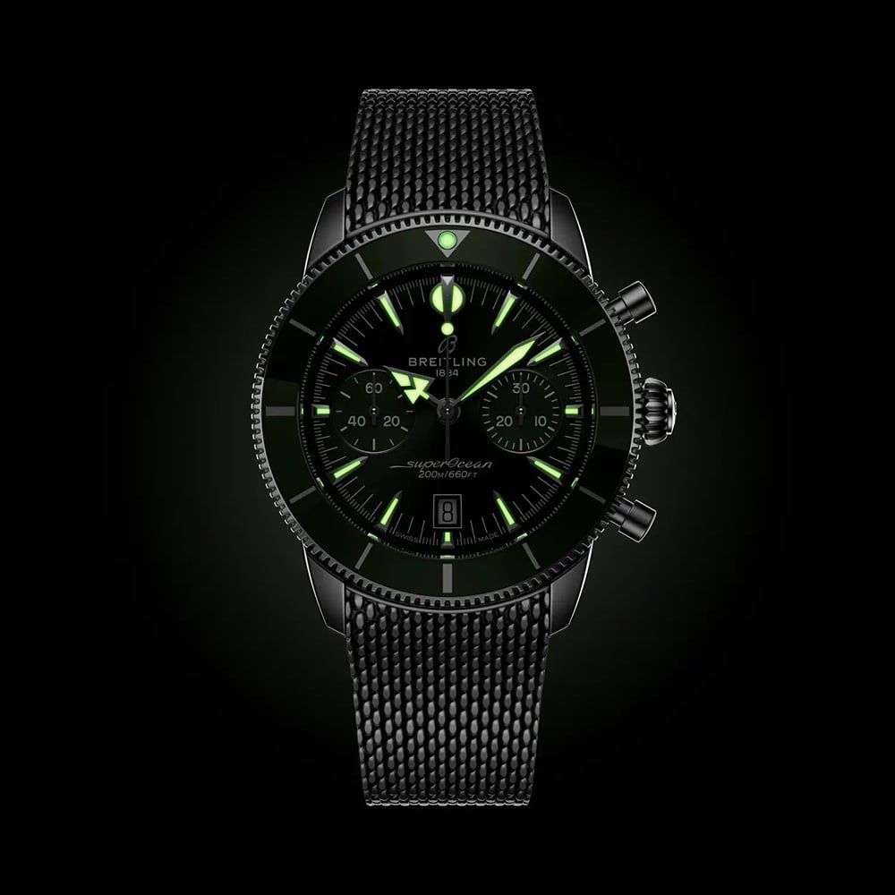 This standout timepiece features a 42mm stainless steel case paired with a striking green dial, giving it a bold and contemporary look. The dial showcases contrasting chronograph sub-dials and a date window protected by sapphire crystal glass. The chronograph function adds durability and precision, while this watch also boasts an impressive 70-hour power reserve. The chronograph function is ideal for timing events down to the second, while the unidirectional green ceramic bezel adds both practical and aesthetic appeal.