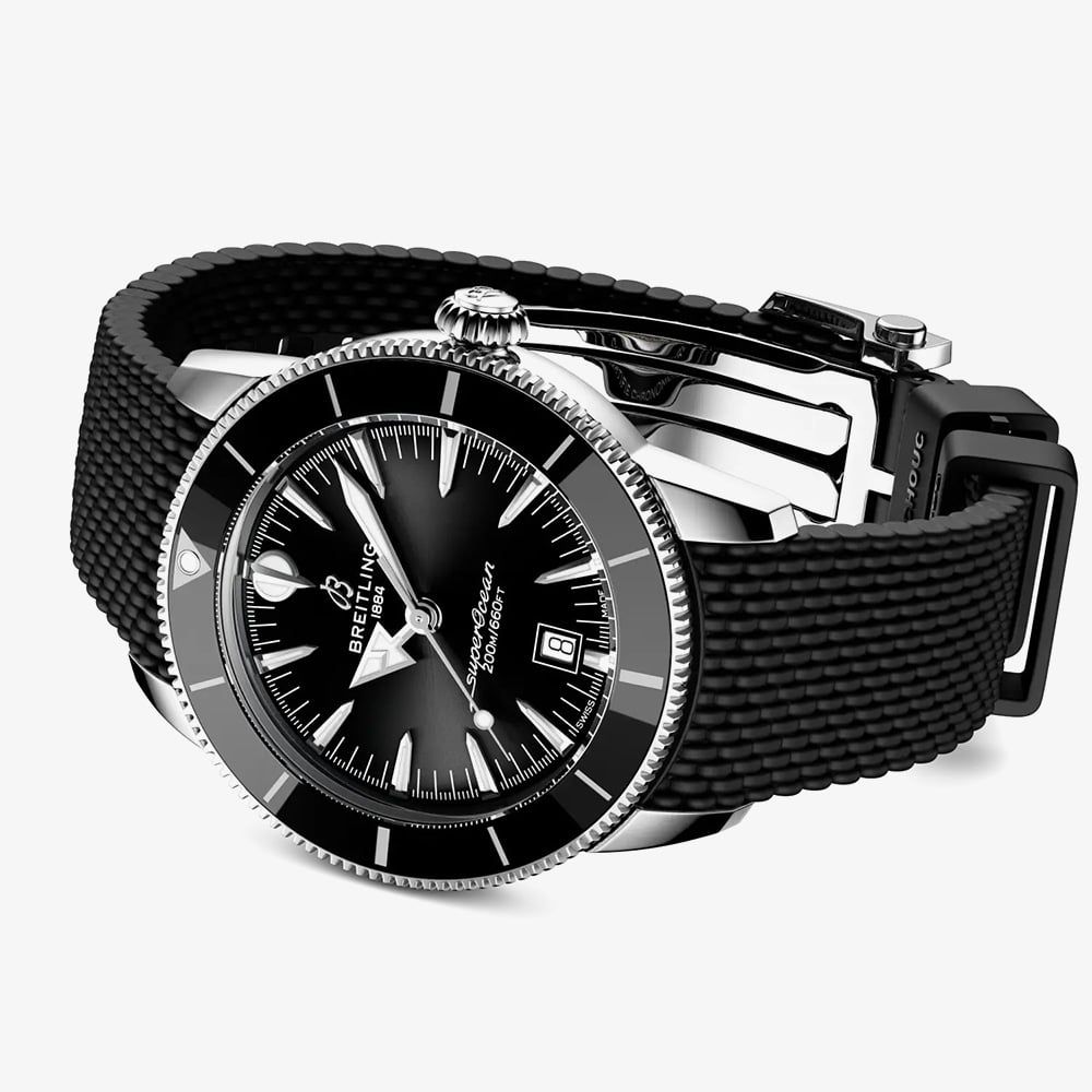 This timepiece delivers exceptional precision and sporty elegance. The 44mm stainless steel case makes a commanding statement, perfectly complemented by a sleek black sunray dial that radiates depth and sophistication. The dial features luminous hands and markers for enhanced legibility, along with a practical day and date display, making it ideal for daily wear.