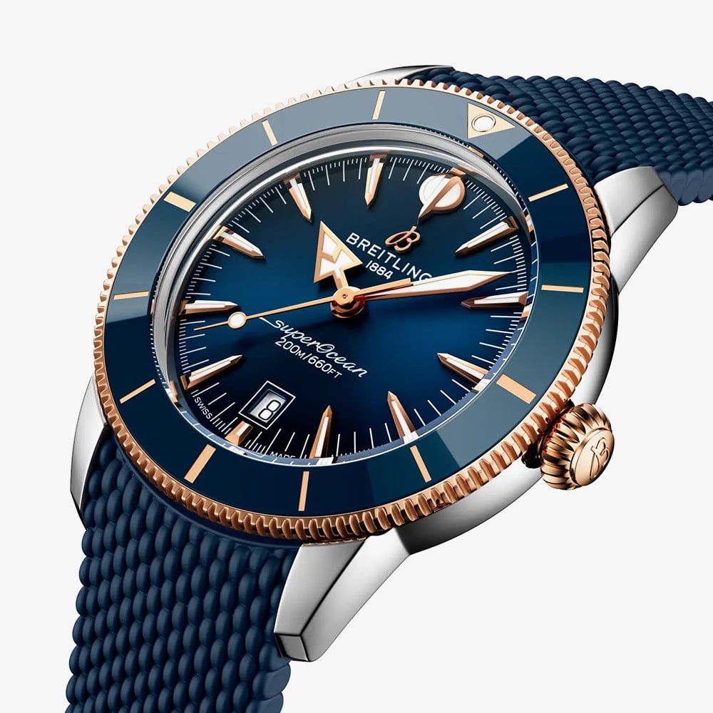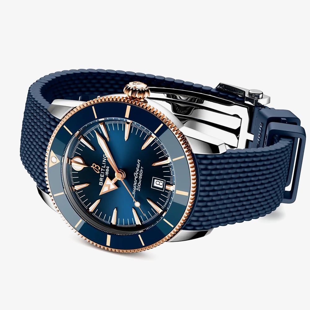 This striking timepiece blends high-performance functionality with refined aesthetics, perfect for those who value both adventure and elegance. The 44mm case, crafted from robust stainless steel, is accented with 18ct rose gold, delivering a rich contrast. The vibrant blue sunray dial radiates depth and clarity, featuring luminous hands and hour markers for optimal readability in any lighting. A practical day and date display enhances everyday functionality while preserving the watch’s balanced look. While the comfortable rubber strap ensures a stylish fit.