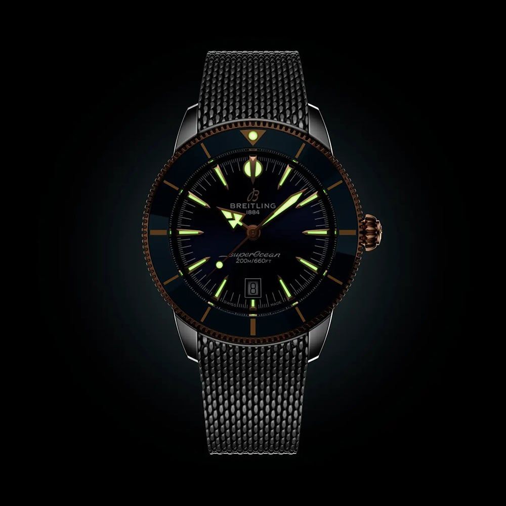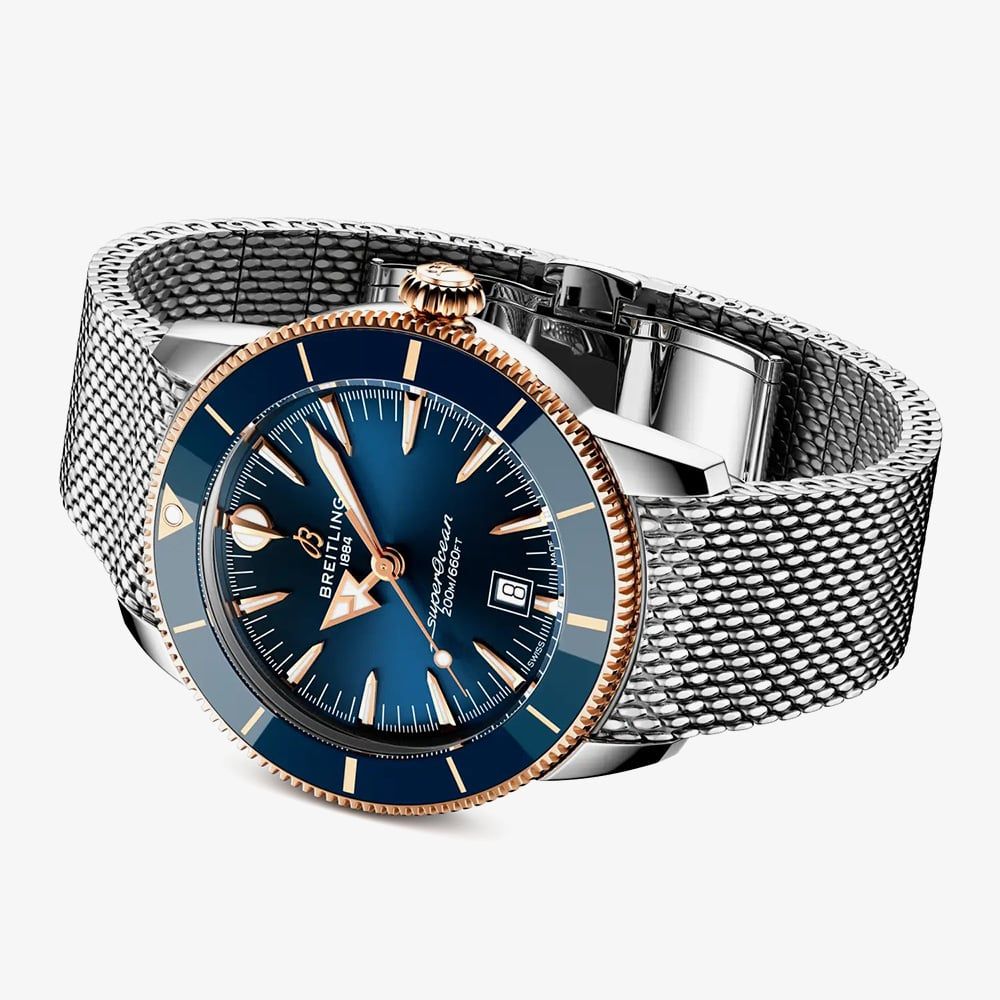 This striking timepiece blends high-performance functionality with refined aesthetics, perfect for those who value both adventure and elegance. The 44mm case, crafted from robust stainless steel, is accented with 18ct rose gold, delivering a rich contrast. The vibrant blue sunray dial radiates depth and clarity, featuring luminous hands and hour markers for optimal readability in any lighting. A practical day and date display enhances everyday functionality while preserving the watch’s balanced look.