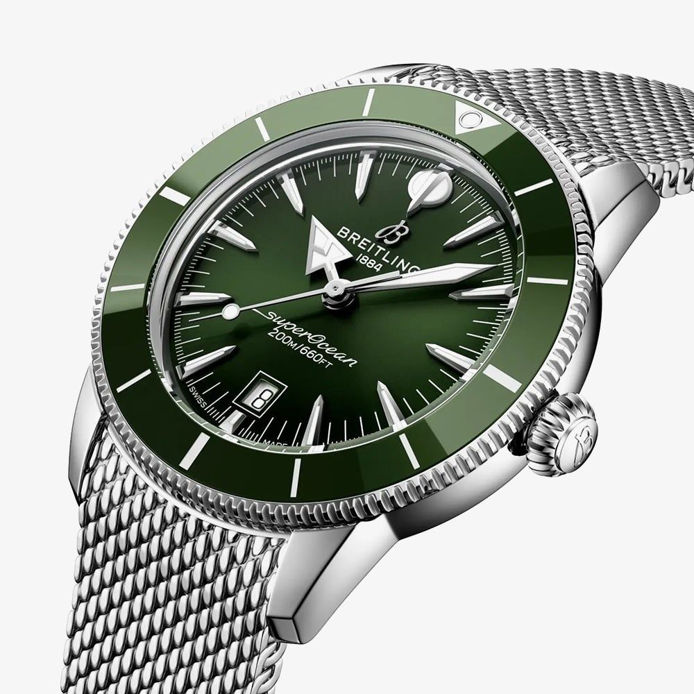 Crafted with a 44mm stainless steel case, this watch features a stunning green sunray dial that reflects light with depth and elegance. The dial is fitted with luminous hands and hour markers for enhanced legibility in any condition, along with a day and date display, ensuring practical everyday utility with a refined finish.