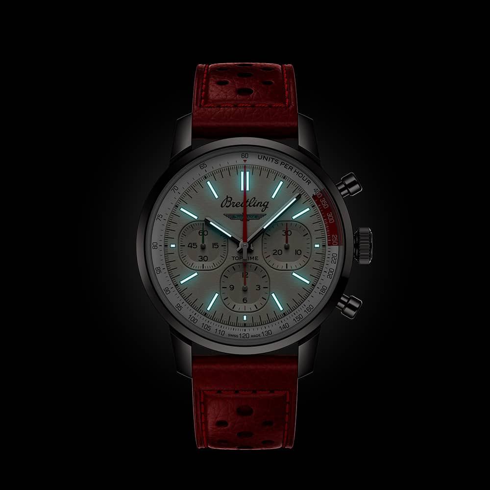 This watch is based on the Ford Thunderbird and was first unveiled at the 1954 Detroit auto show. It was touted as a fun to drive cabriolet that made its presence felt with its luxurious design, solid build and dramatic tail-fin. The top time watch features the colours and the logo of the iconic design. The Chronograph sub-dials are slightly squared the represent the dashboard dials of the original classic car. The watch also features a Tachymeter scale to give it more of that sporty feel to the watch.